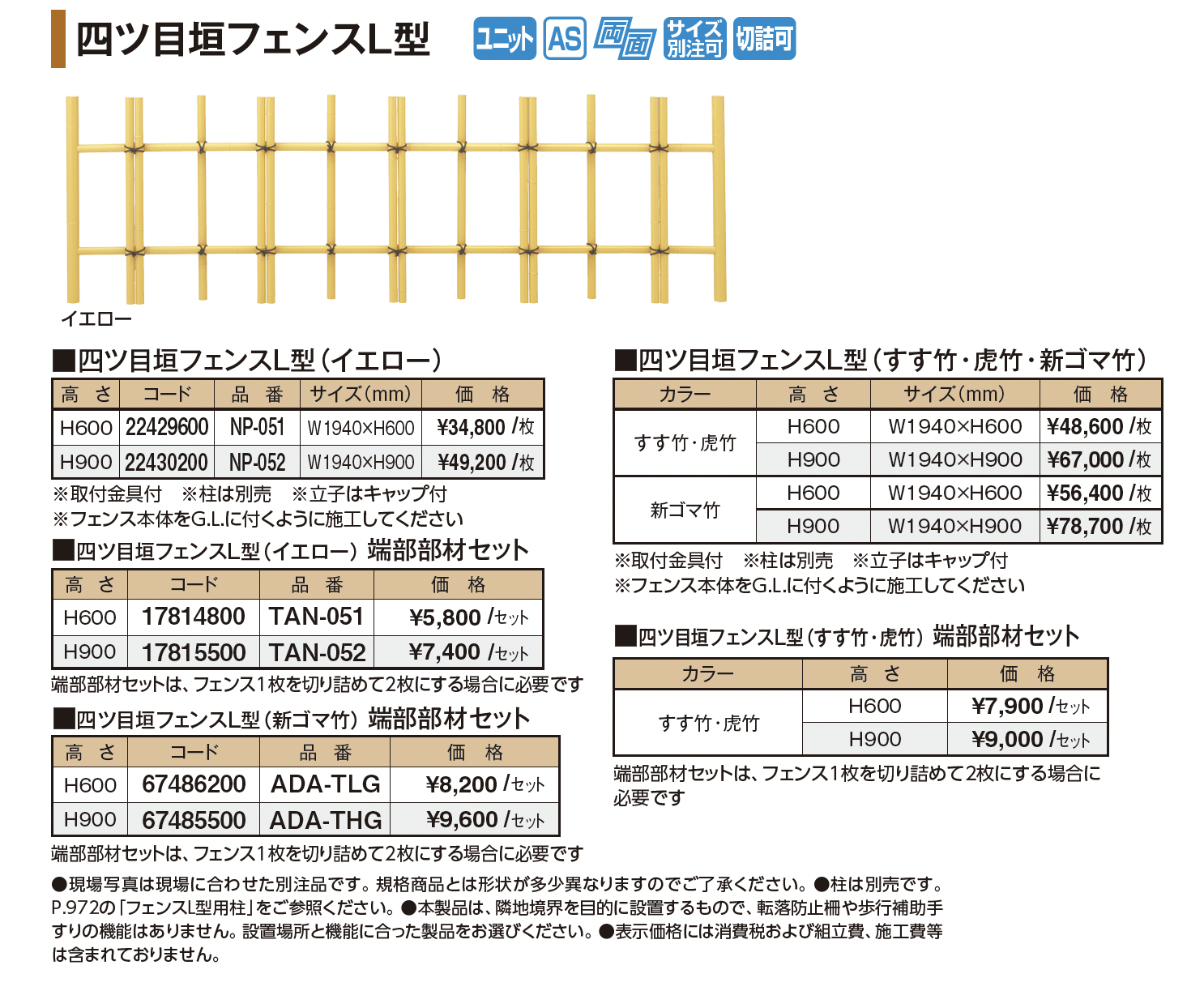 | 新旧品 | 四ツ目垣フェンスL型(プロガーデンエクステリア総合カタログPROEX2025)四ツ目垣フェンスL型【2024年版】(プロガーデンエクステリア総合カタログ PROEX2024) |
