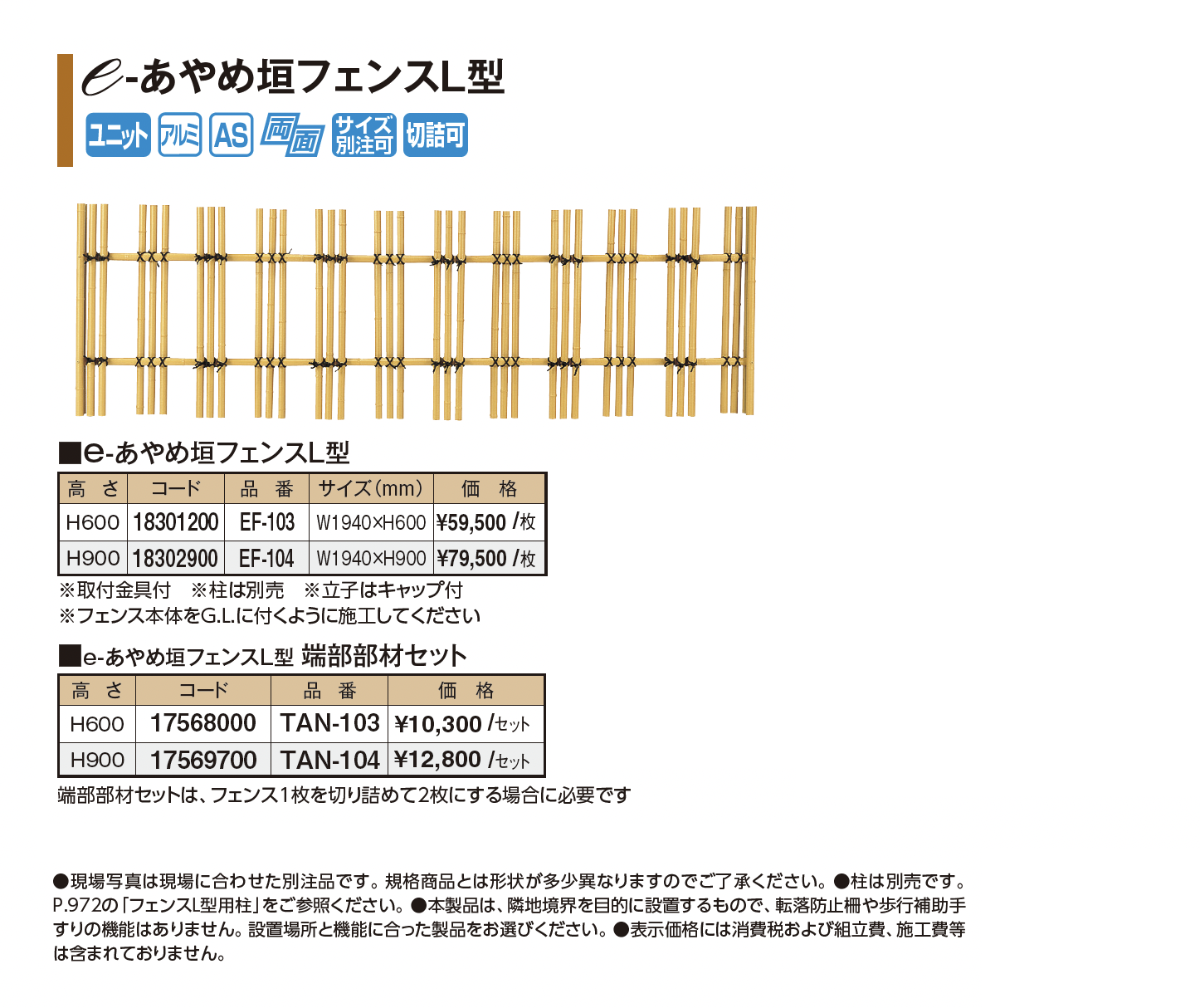 | 新旧品 | e-あやめ垣フェンスL型(プロガーデンエクステリア総合カタログPROEX2025)e-あやめ垣フェンスL型【2024年版】(プロガーデンエクステリア総合カタログ PROEX2024) |