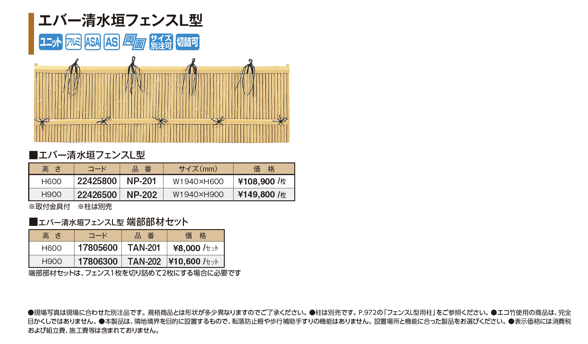 | 新旧品 | エバー清水垣フェンスL型(プロガーデンエクステリア総合カタログPROEX2025)エバー清水垣フェンスL型【2024年版】(プロガーデンエクステリア総合カタログ PROEX2024) |