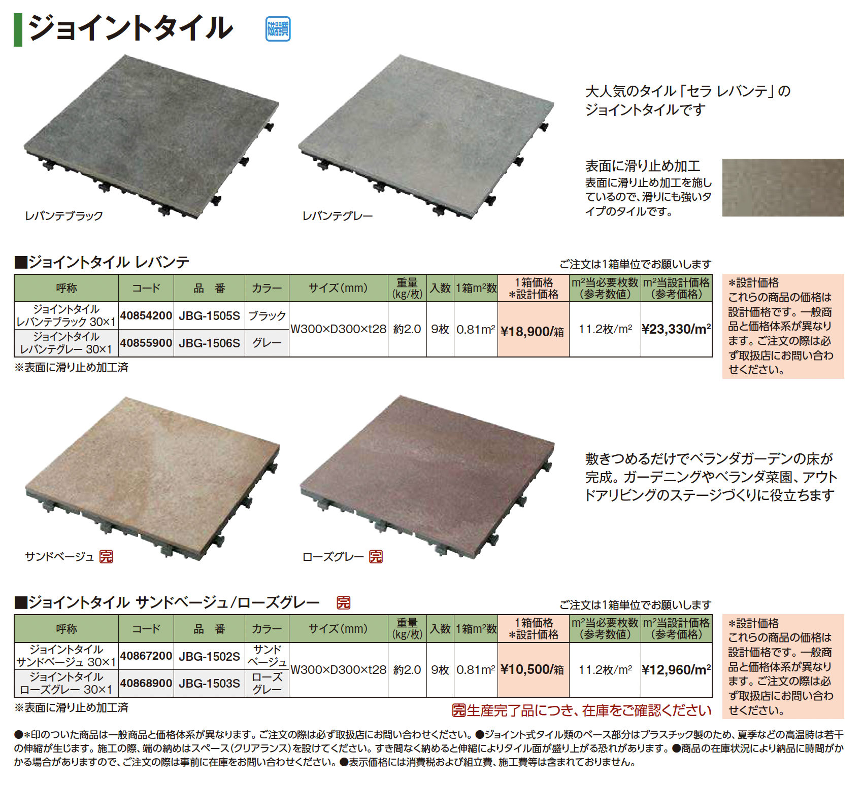 | 新旧品 | ジョイントタイル(プロガーデンエクステリア総合カタログPROEX2025)ジョイントタイル【2024年版】(プロガーデンエクステリア総合カタログ PROEX2024) |
