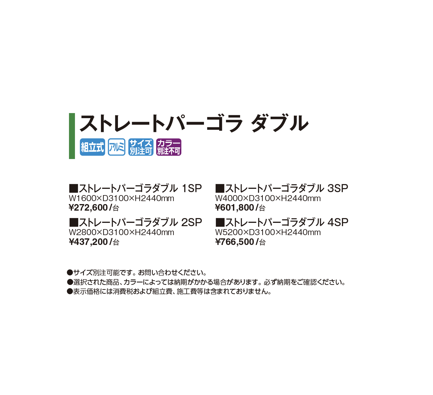 | 新旧品 | ガーデンパーゴラ ストレートパーゴラ ダブル(プロガーデンエクステリア総合カタログPROEX2025)ガーデンパーゴラ ストレートパーゴラ ダブル【2024年版】(プロガーデンエクステリア総合カタログ PROEX2024) |