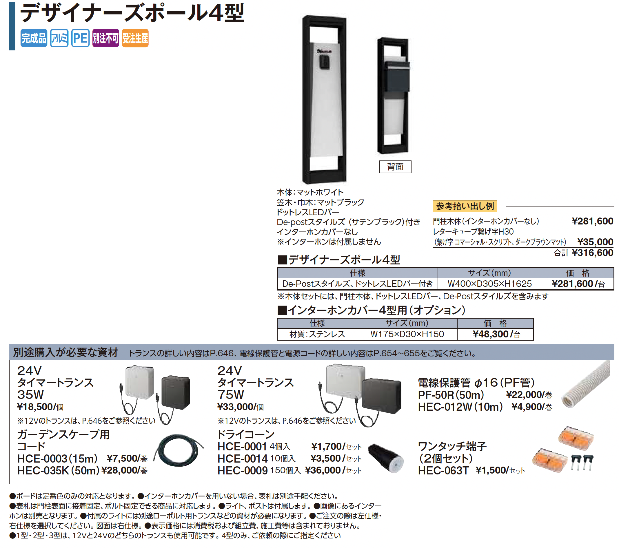 | 新旧品 | デザイナーズポール4型(プロガーデンエクステリア総合カタログPROEX2025)デザイナーズポール4型【2024年版】(プロガーデンエクステリア総合カタログ PROEX2024) |