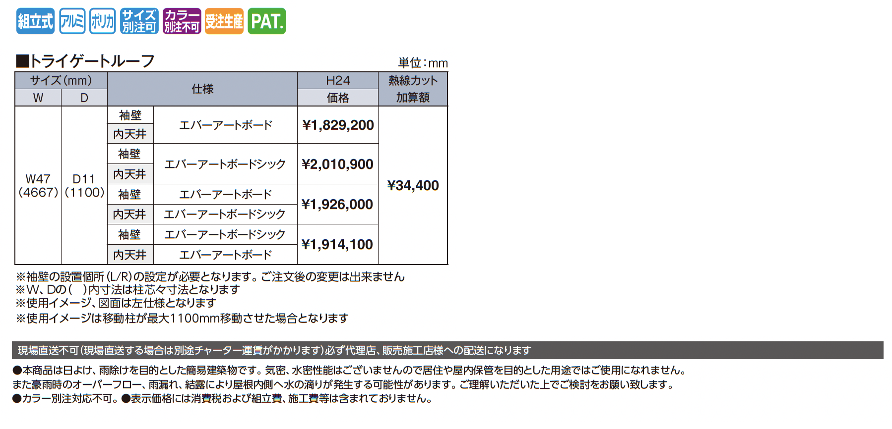 | 新旧品 | トライゲートルーフ(プロガーデンエクステリア総合カタログPROEX2025)トライゲートルーフ【2024年版】(プロガーデンエクステリア総合カタログ PROEX2024) |