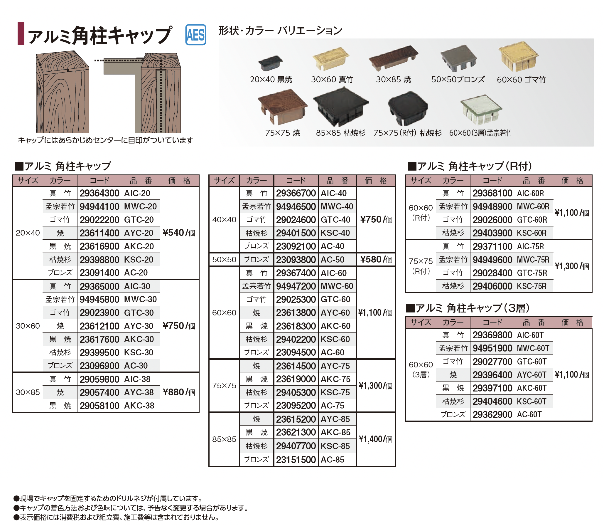 | 新旧品 | エバーバンブー®︎ アルミ角柱キャップ(プロガーデンエクステリア総合カタログPROEX2025)エバーバンブー®︎ アルミ角柱キャップ【2024年版】(プロガーデンエクステリア総合カタログ PROEX2024) |