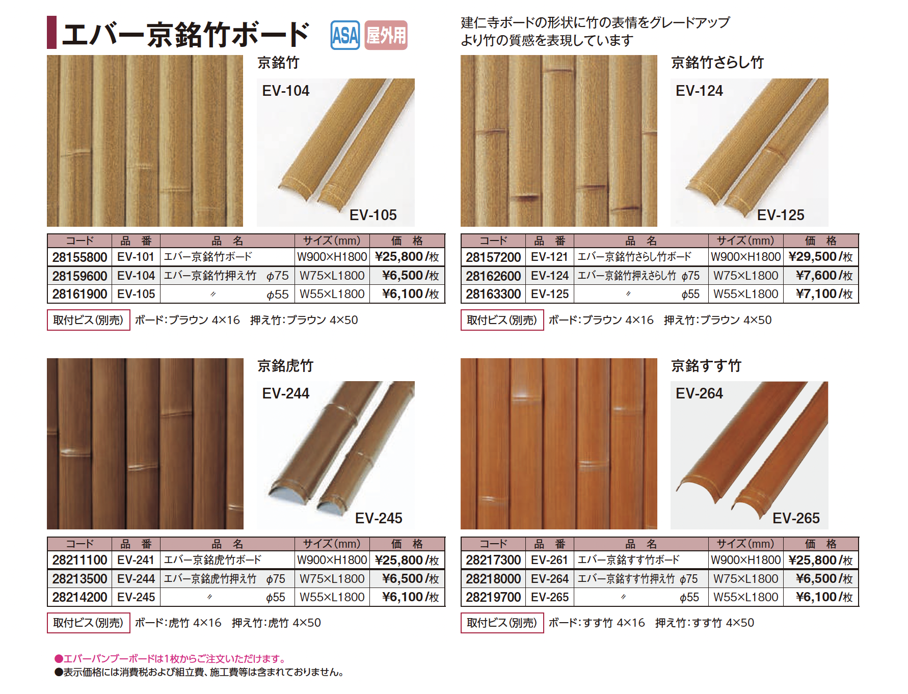 | 新旧品 | エバーバンブー®︎ボード エバー京銘竹ボード(プロガーデンエクステリア総合カタログPROEX2025)エバーバンブー®︎ボード エバー京銘竹ボード【2024年版】(プロガーデンエクステリア総合カタログ PROEX2024) |