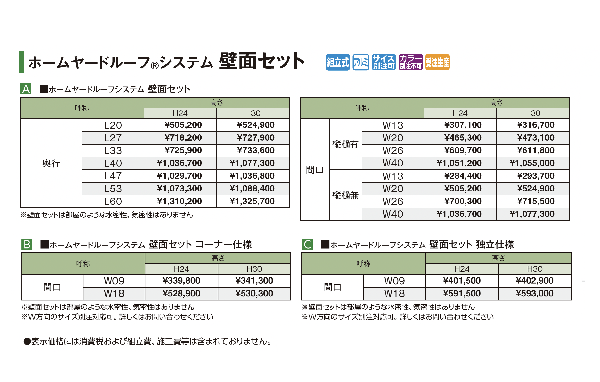 | 新旧品 | ホームヤードルーフ®︎システム 壁面セット(プロガーデンエクステリア総合カタログPROEX2025)ホームヤードルーフシステム®︎ 壁面セット【2024年版】(プロガーデンエクステリア総合カタログ PROEX2024) |