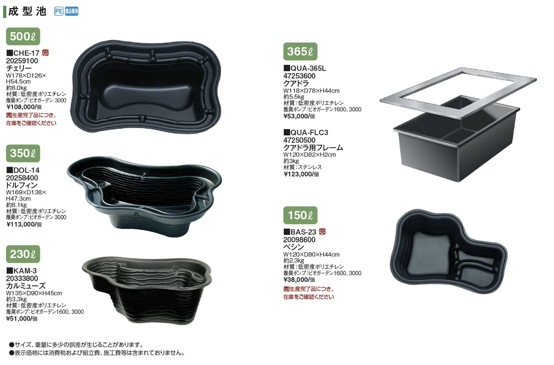 | 新旧品 | 成型池(プロガーデンエクステリア総合カタログPROEX2025)成型池【2024年版】(プロガーデンエクステリア総合カタログ PROEX2024) |