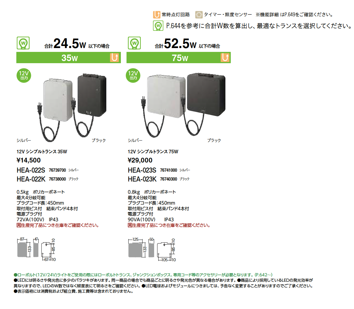 | 新旧品 | 12Vトランス 常時出力(プロガーデンエクステリア総合カタログPROEX2025)12Vトランス 常時出力【2024年版】(プロガーデンエクステリア総合カタログ PROEX2024) |