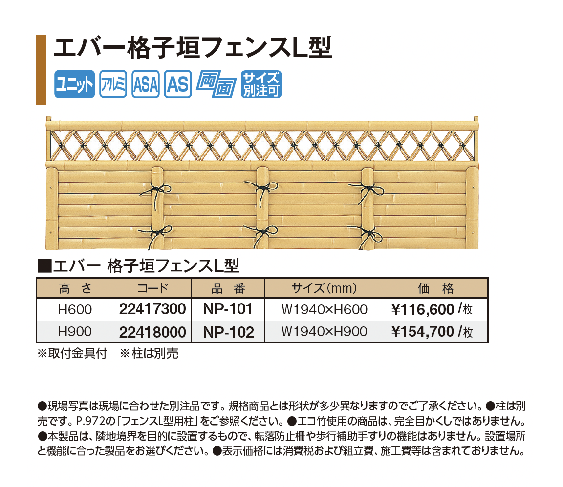 | 新旧品 | エバー格子垣フェンスL型(プロガーデンエクステリア総合カタログPROEX2025)エバー格子垣フェンスL型【2024年版】(プロガーデンエクステリア総合カタログ PROEX2024) |