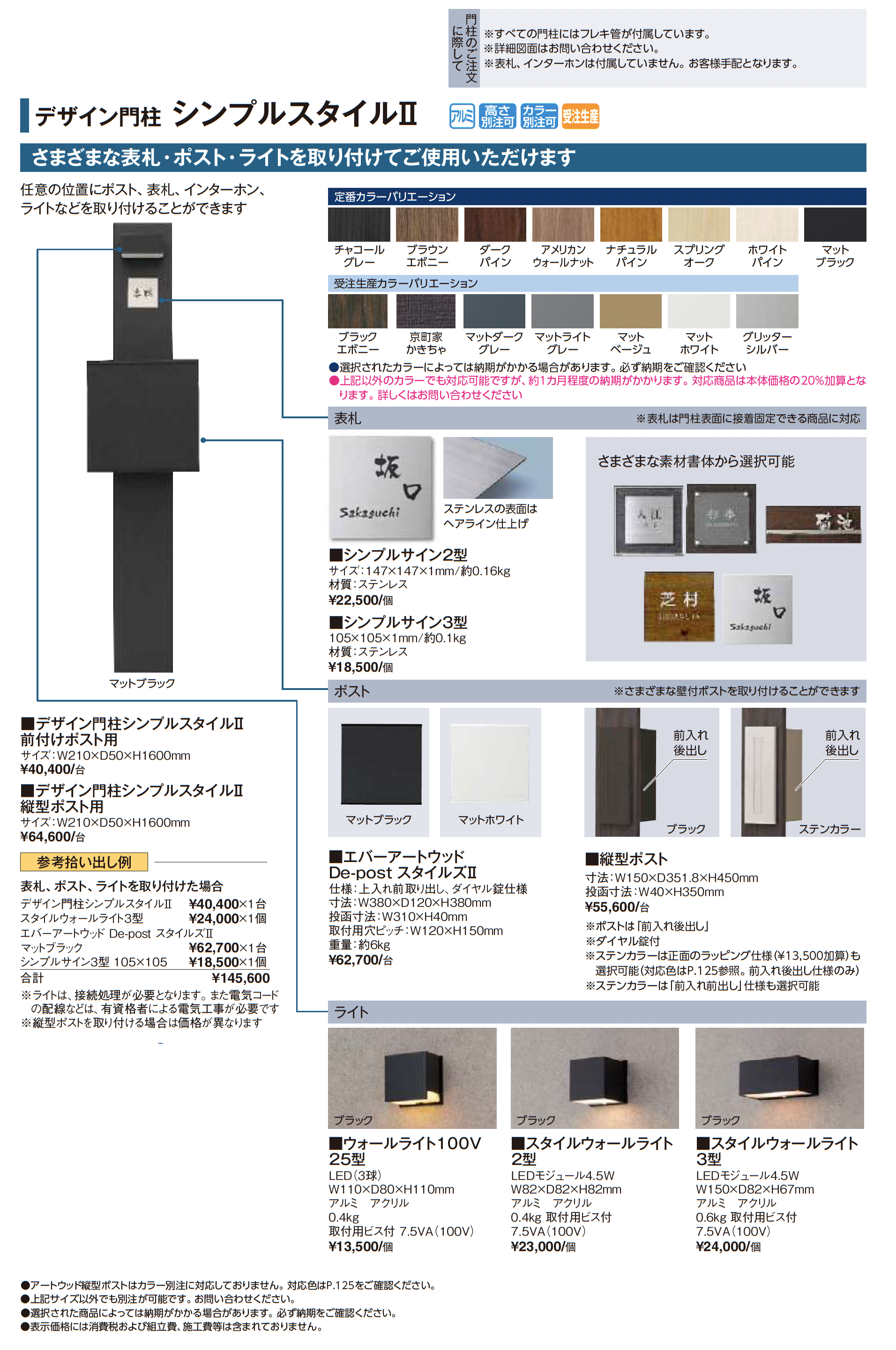 | 新旧品 | デザイン門柱 シンプルスタイルⅡ(プロガーデンエクステリア総合カタログPROEX2025)デザイン門柱 シンプルスタイルⅡ【2024年版】(プロガーデンエクステリア総合カタログ PROEX2024) |