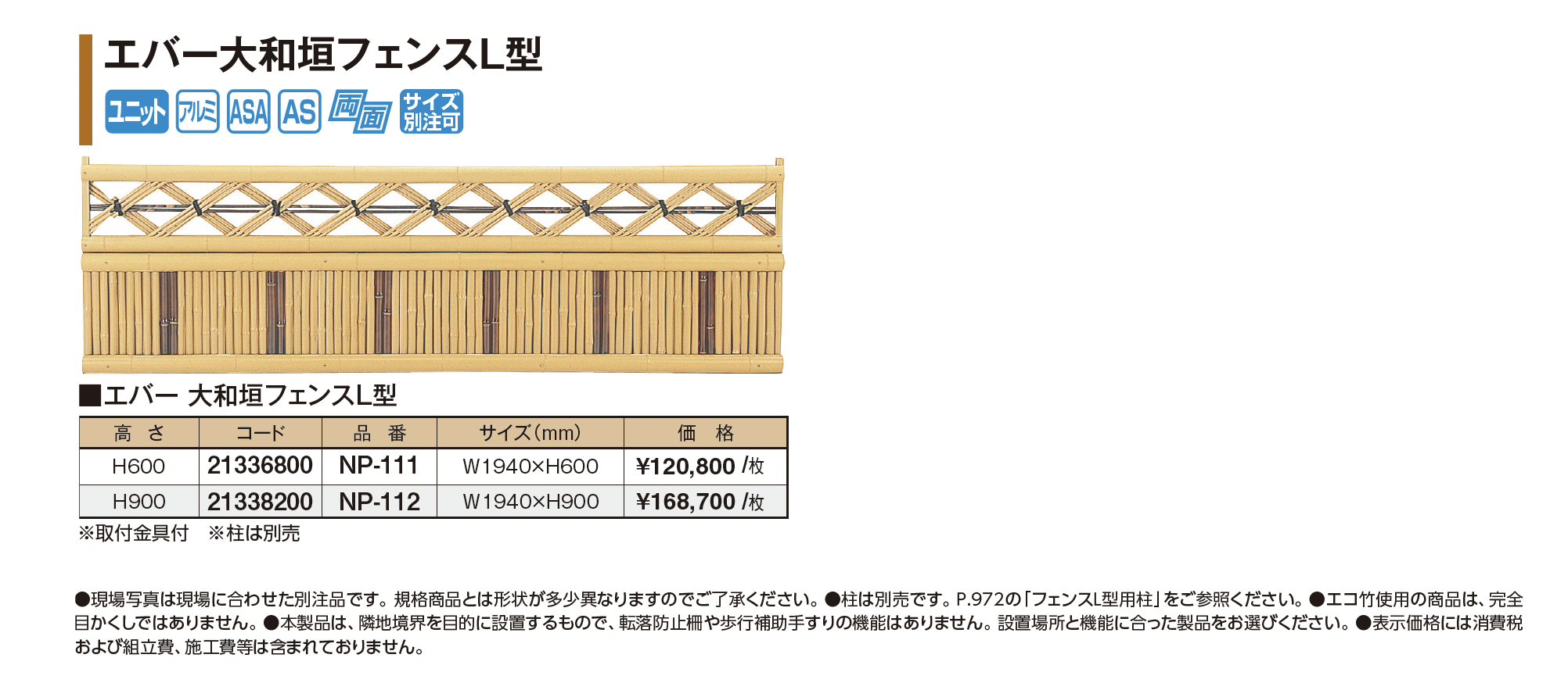 | 新旧品 | エバー大和垣フェンスL型(プロガーデンエクステリア総合カタログPROEX2025)エバー大和垣フェンスL型【2024年版】(プロガーデンエクステリア総合カタログ PROEX2024) |