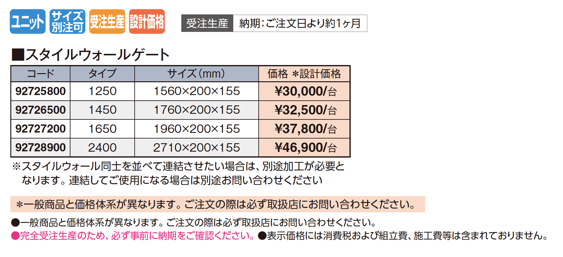 | 標準納期 | 受注生産 |