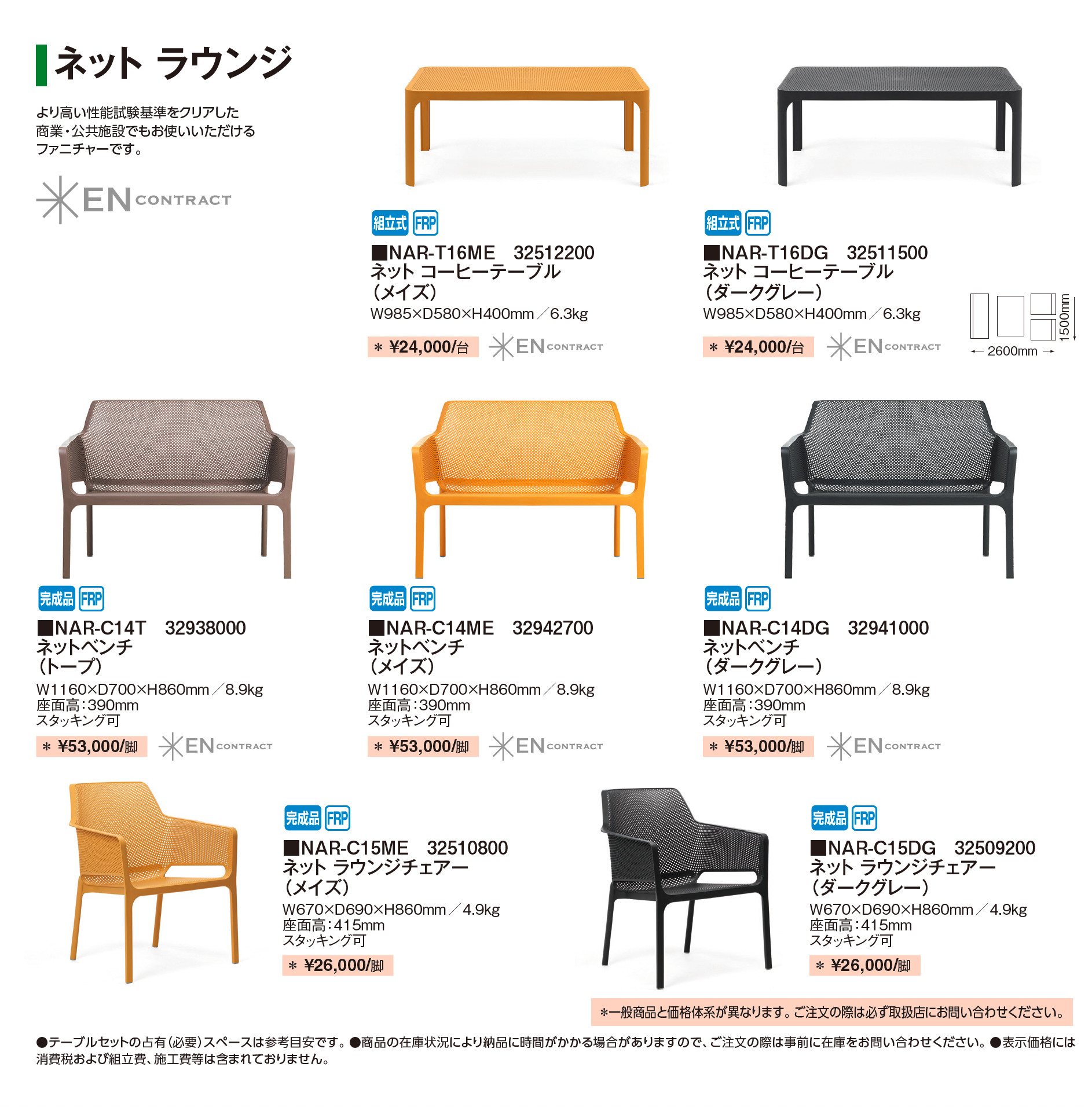 | カラー | ラウンジチェアー・テーブル:メイズ ラウンジチェアー・テーブル:ダークグレー チェアー:サリチェブルー チェアー:トープ チェアー:コラロ チェアー:ホワイト |