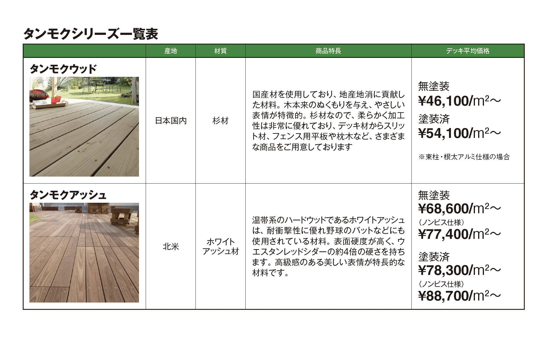 | 新旧品 | タンモクウッド®︎ タンモク格子デッキ(プロガーデンエクステリア総合カタログPROEX2025)タンモクウッド®︎ タンモク格子デッキ【2024年版】(プロガーデンエクステリア総合カタログ PROEX2024) |