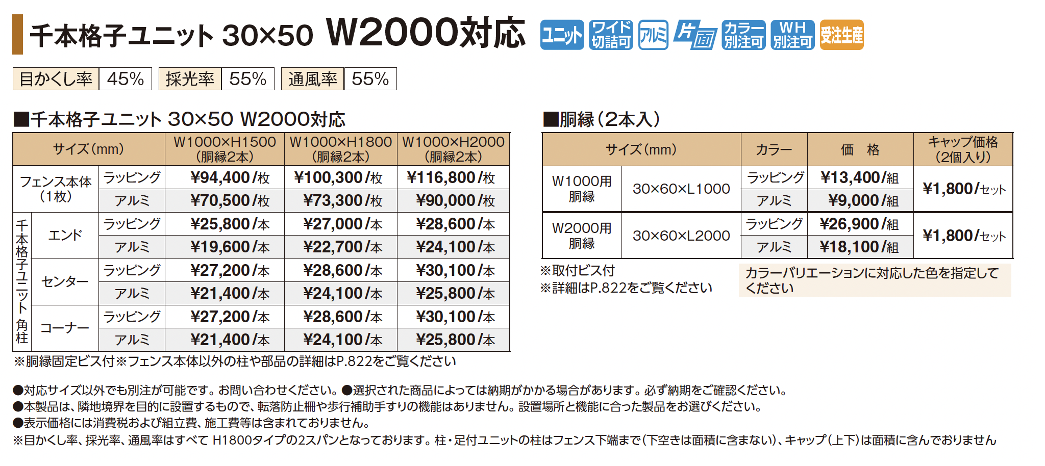 | 新旧品 | 千本格子ユニット30×50 W2000対応(プロガーデンエクステリア総合カタログPROEX2025)千本格子ユニット30×50 W2000対応【2024年版】(プロガーデンエクステリア総合カタログ PROEX2024) |