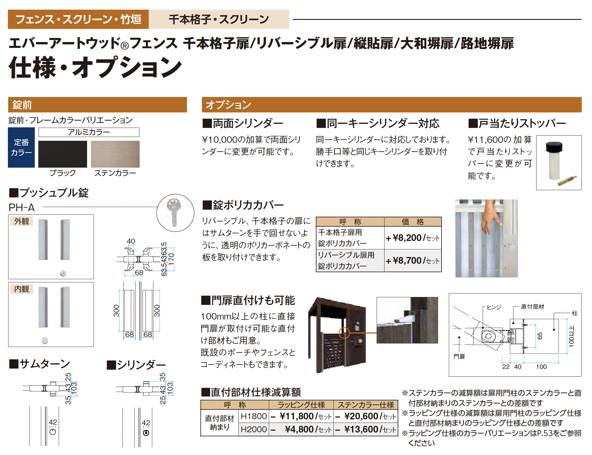 | 新旧品 | エバーアートウッド®︎フェンス リバーシブル扉(プロガーデンエクステリア総合カタログPROEX2025)エバーアートウッド®︎フェンス リバーシブル扉【2024年版】(プロガーデンエクステリア総合カタログ PROEX2024) |