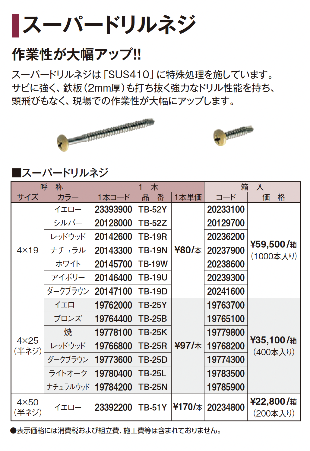 | 新旧品 | エバーバンブー®︎ スーパードリルネジ(プロガーデンエクステリア総合カタログPROEX2025)エバーバンブー®︎ スーパードリルネジ【2024年版】(プロガーデンエクステリア総合カタログ PROEX2024) |