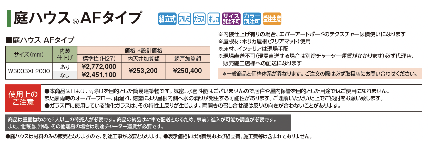 | 新旧品 | 庭ハウス®︎AFタイプ(プロガーデンエクステリア総合カタログPROEX2025)庭ハウス®︎AFタイプ【2024年版】(プロガーデンエクステリア総合カタログ PROEX2024) |