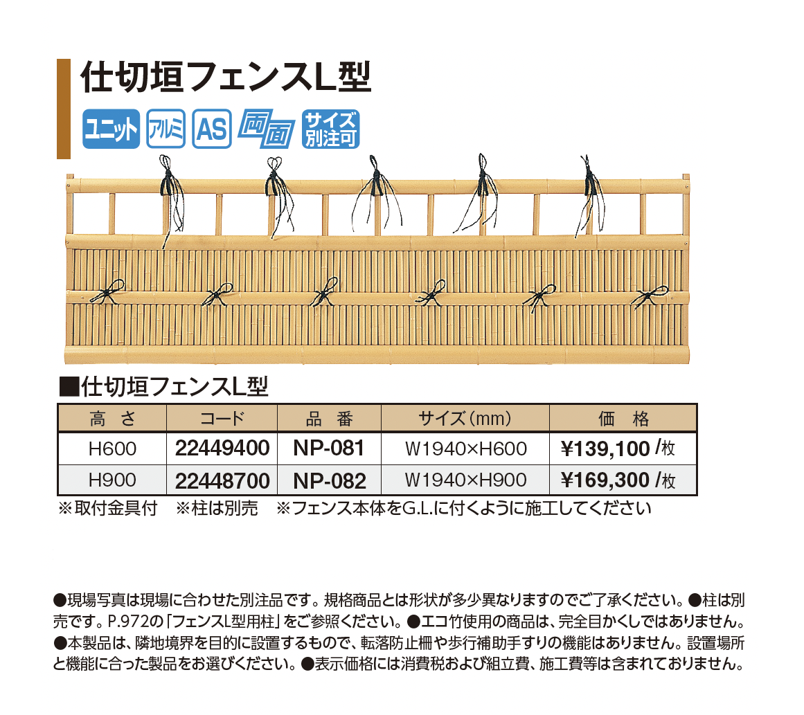 | 新旧品 | 仕切垣フェンスL型(プロガーデンエクステリア総合カタログPROEX2025)仕切垣フェンスL型【2024年版】(プロガーデンエクステリア総合カタログ PROEX2024) |