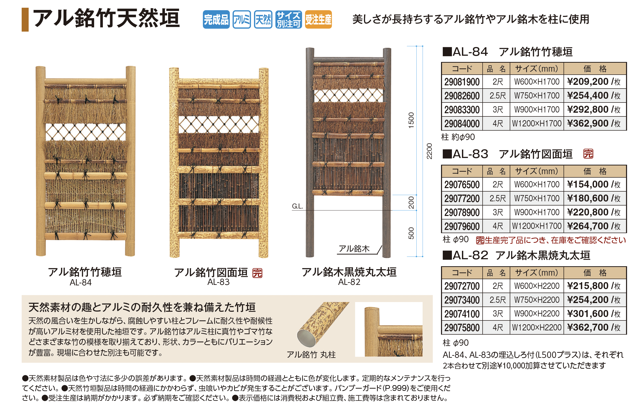 | 新旧品 | アル銘竹天然垣(プロガーデンエクステリア総合カタログPROEX2025)アル銘竹天然垣【2024年版】(プロガーデンエクステリア総合カタログ PROEX2024) |