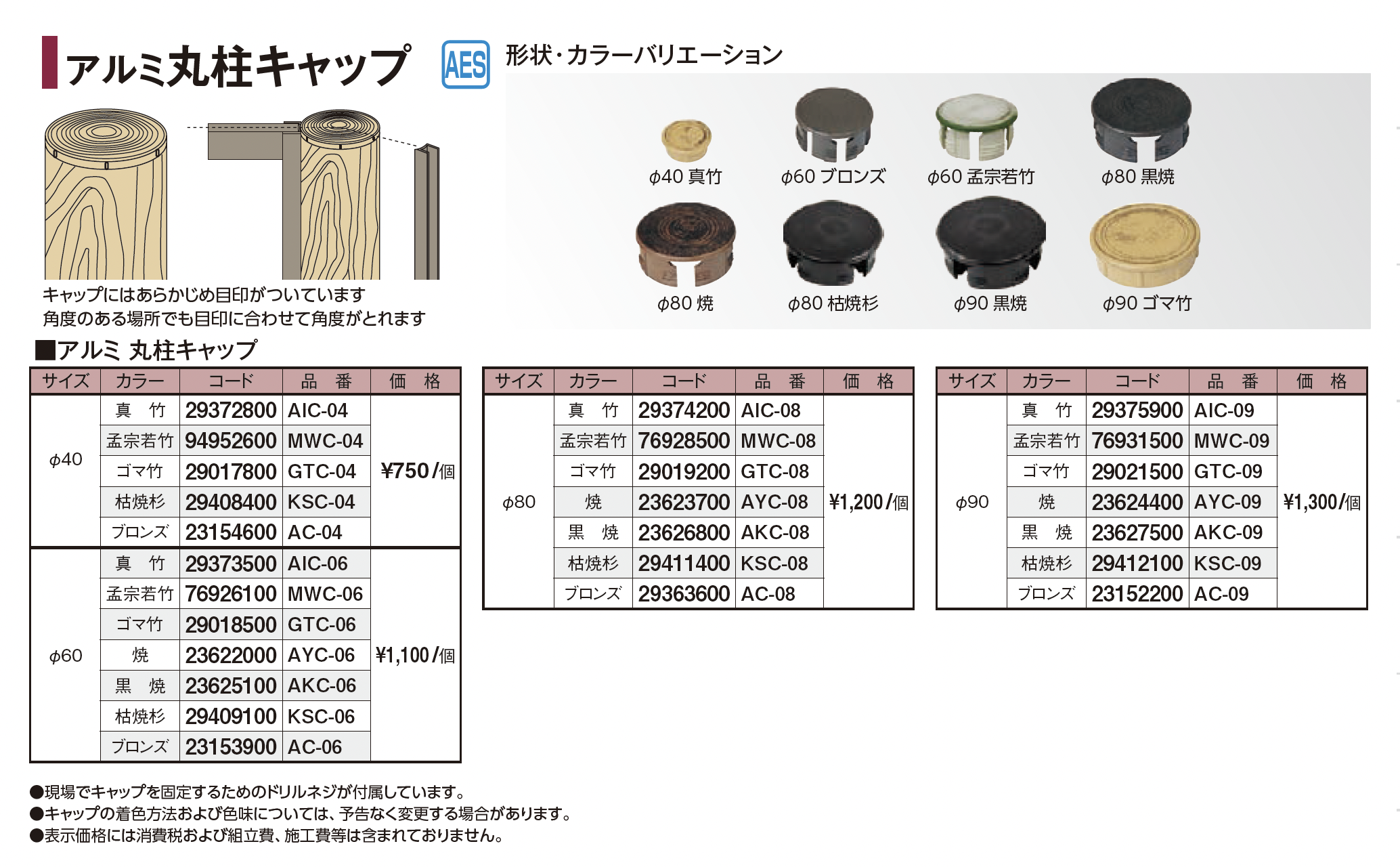 | 新旧品 | エバーバンブー®︎ アルミ丸柱キャップ(プロガーデンエクステリア総合カタログPROEX2025)エバーバンブー®︎ アルミ丸柱キャップ【2024年版】(プロガーデンエクステリア総合カタログ PROEX2024) |