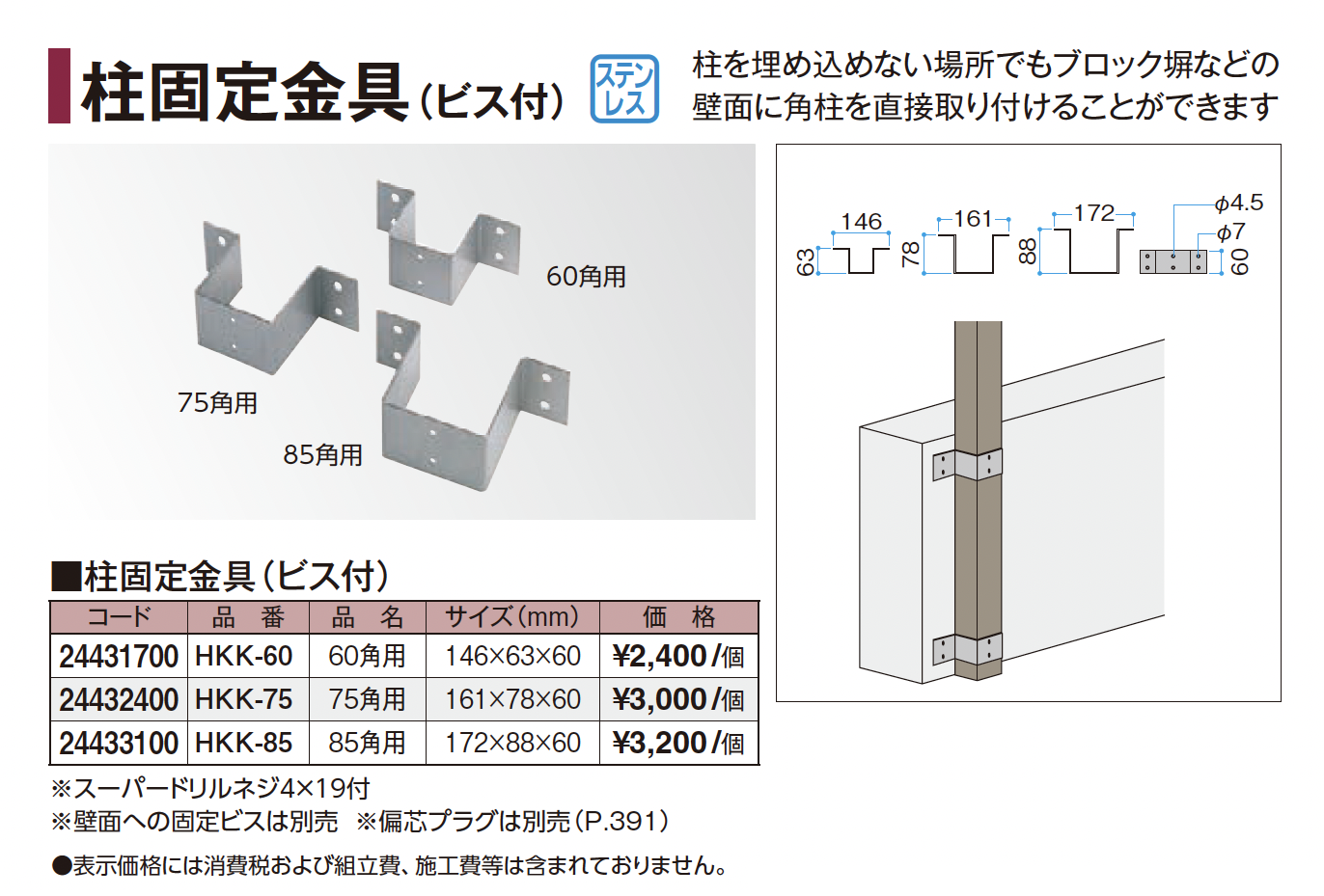 | 新旧品 | エバーバンブー®︎ 柱固定金具(ビス付)(プロガーデンエクステリア総合カタログPROEX2025)エバーバンブー®︎ 柱固定金具(ビス付)【2024年版】(プロガーデンエクステリア総合カタログ PROEX2024) |