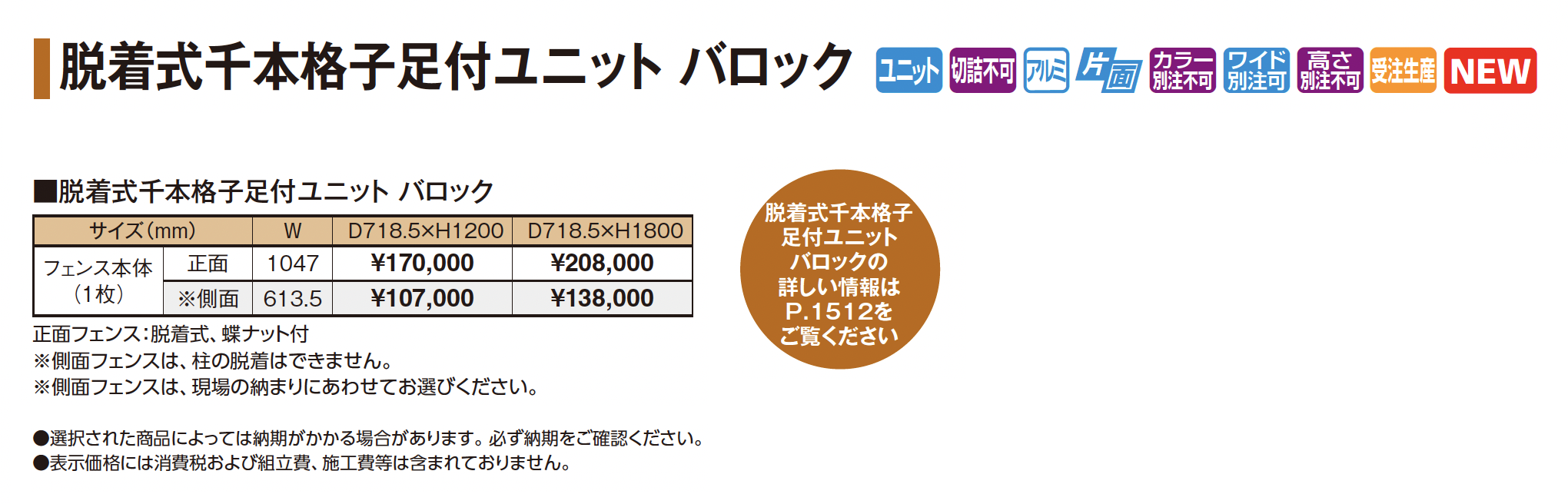 脱着式千本格子足付ユニット バロック