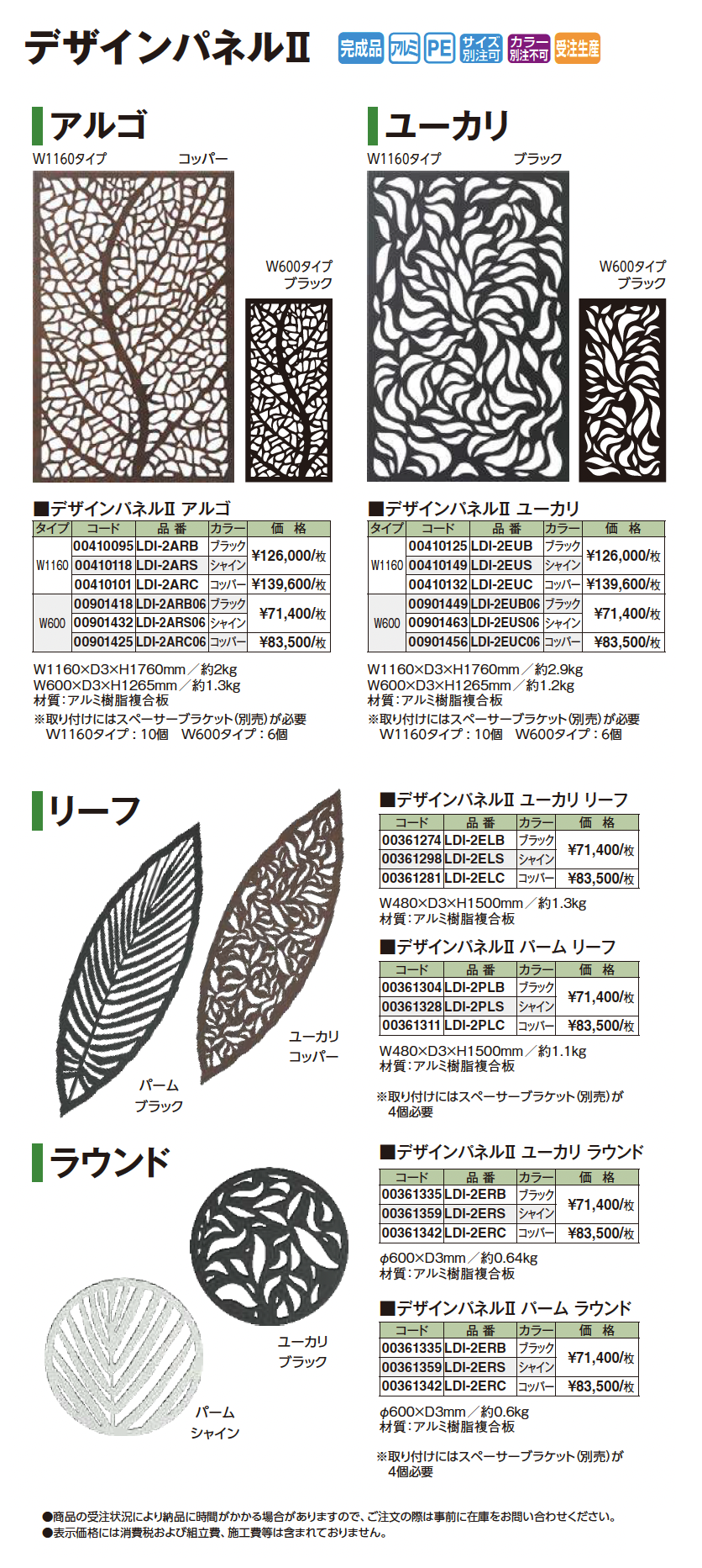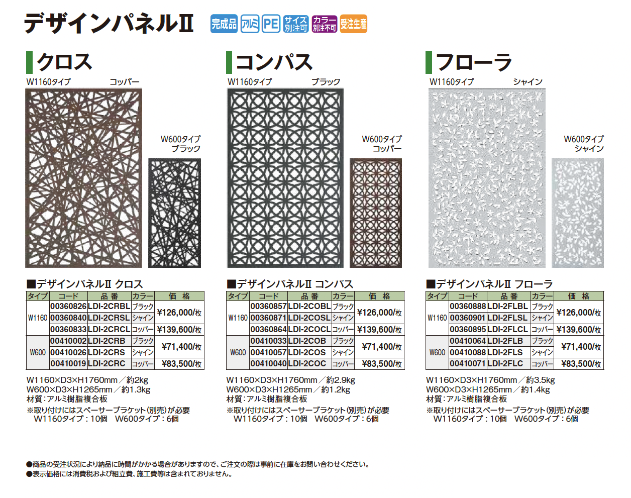 | 新旧品 | デザインパネルⅡ(プロガーデンエクステリア総合カタログPROEX2025)デザインパネルⅡ【2024年版】(プロガーデンエクステリア総合カタログ PROEX2024) |