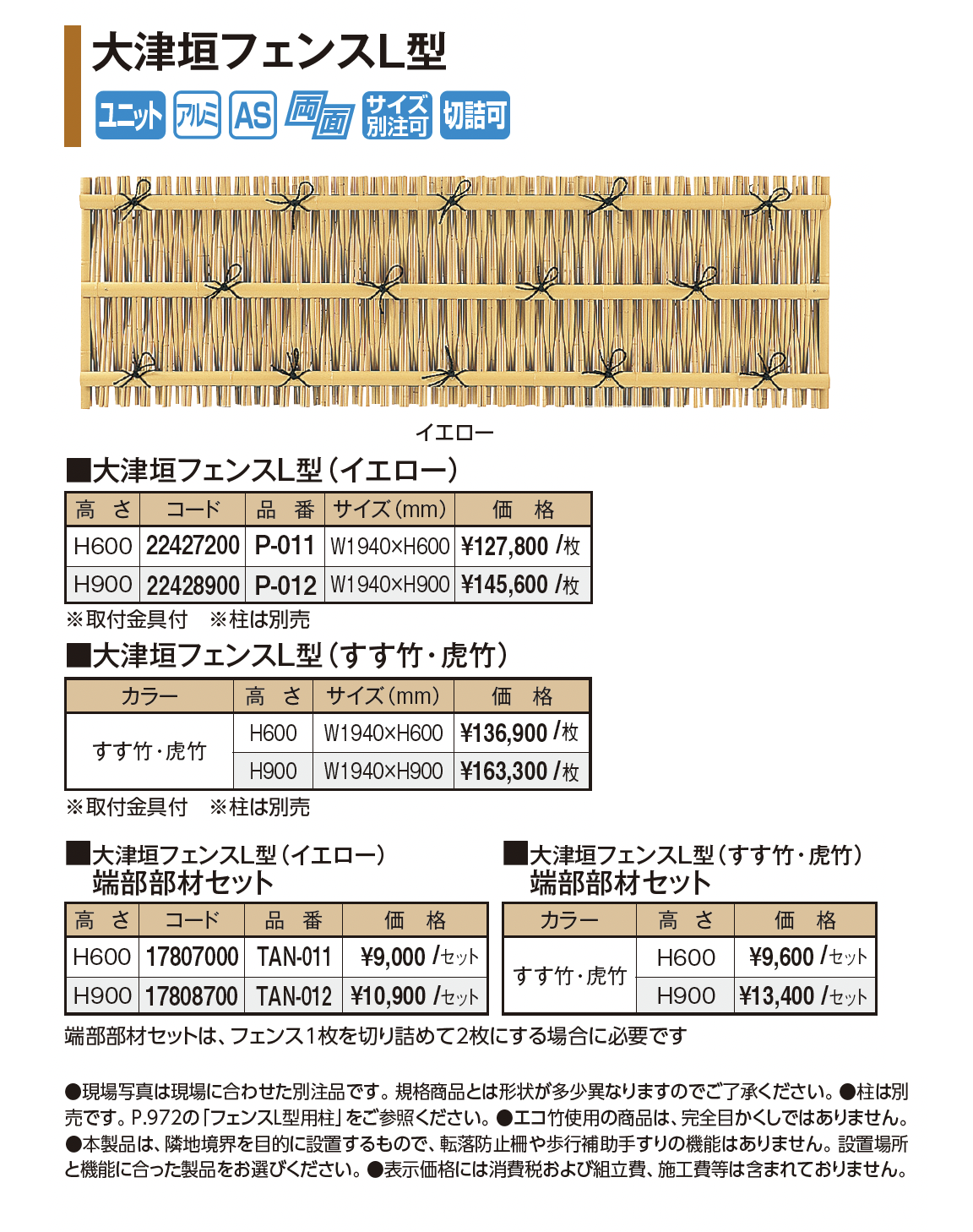 | 新旧品 | 大津垣フェンスL型(プロガーデンエクステリア総合カタログPROEX2025)大津垣フェンスL型【2024年版】(プロガーデンエクステリア総合カタログ PROEX2024) |