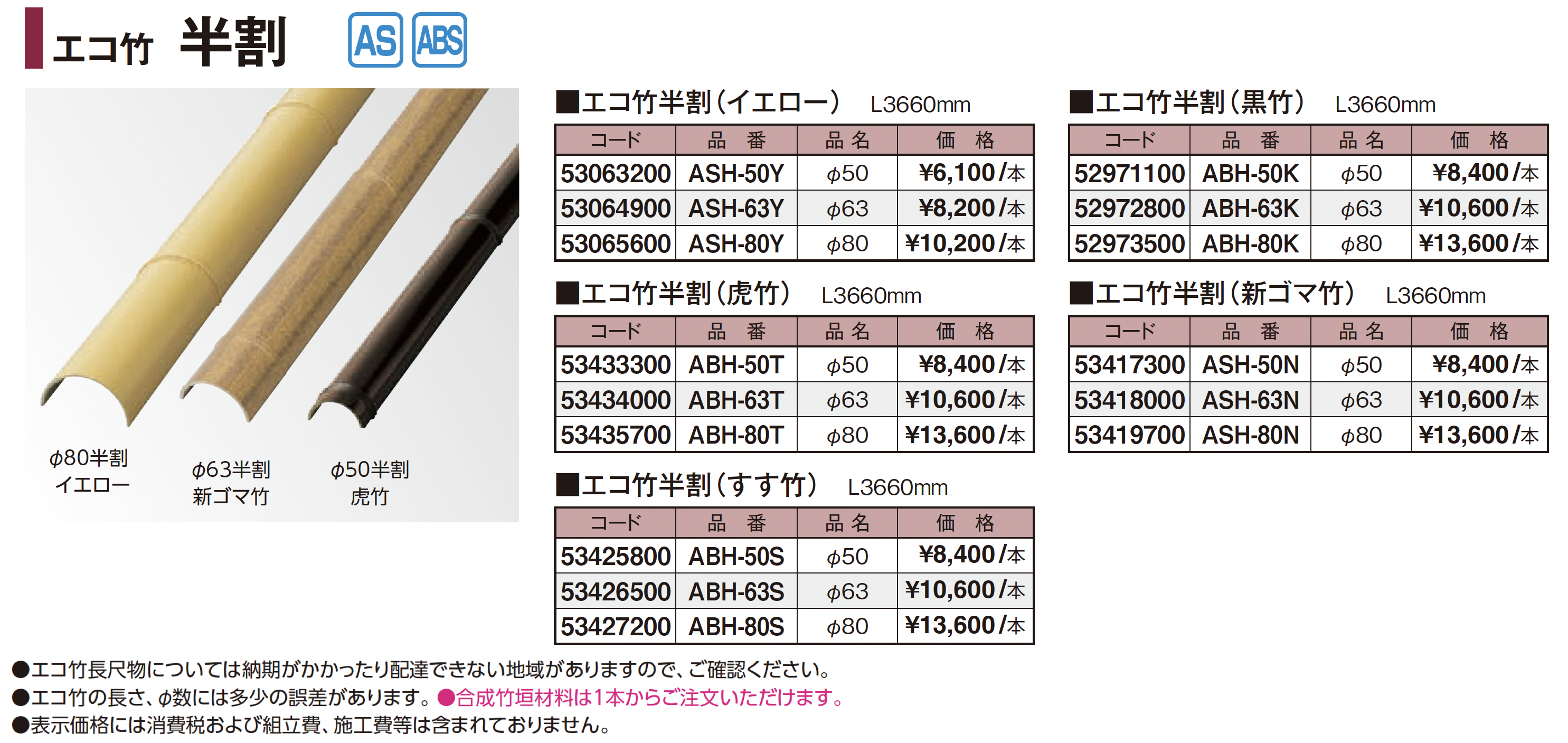 | 新旧品 | エバーバンブー®︎ エコ竹 半割(プロガーデンエクステリア総合カタログPROEX2025)エバーバンブー®︎ エコ竹 半割【2024年版】(プロガーデンエクステリア総合カタログ PROEX2024) |