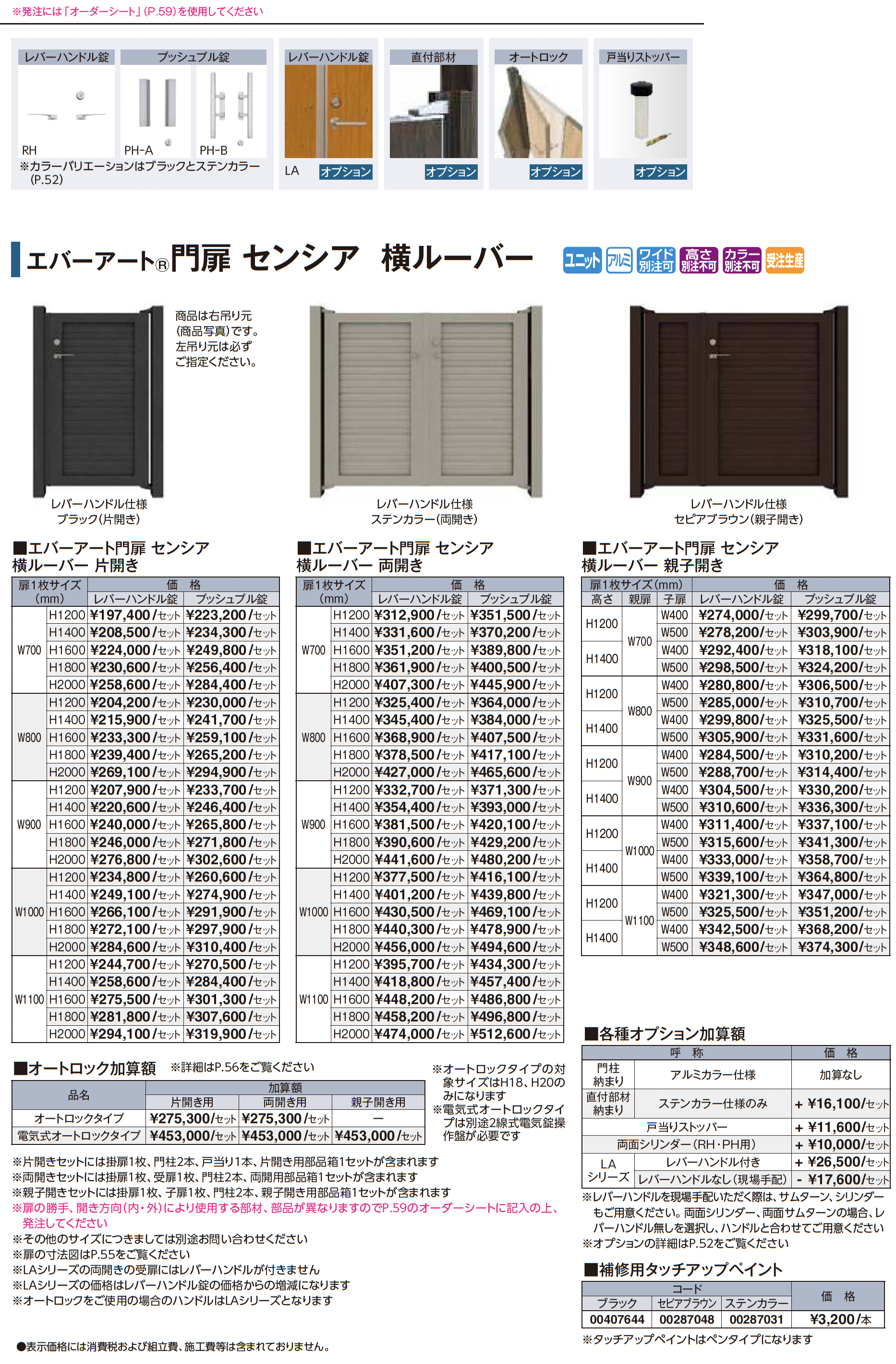 | 新旧品 | エバーアート門扉®︎ センシア 横ルーバー(プロガーデンエクステリア総合カタログPROEX2025)エバーアート門扉®︎ センシア 横ルーバー【2024年版】(プロガーデンエクステリア総合カタログ PROEX2024) |
