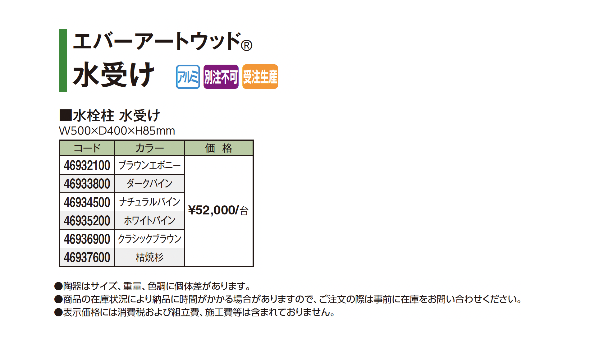 | 新旧品 | エバーアートウッド®︎ 水受け(プロガーデンエクステリア総合カタログPROEX2025)エバーアートウッド®︎ 水受け【2024年版】(プロガーデンエクステリア総合カタログ PROEX2024) |