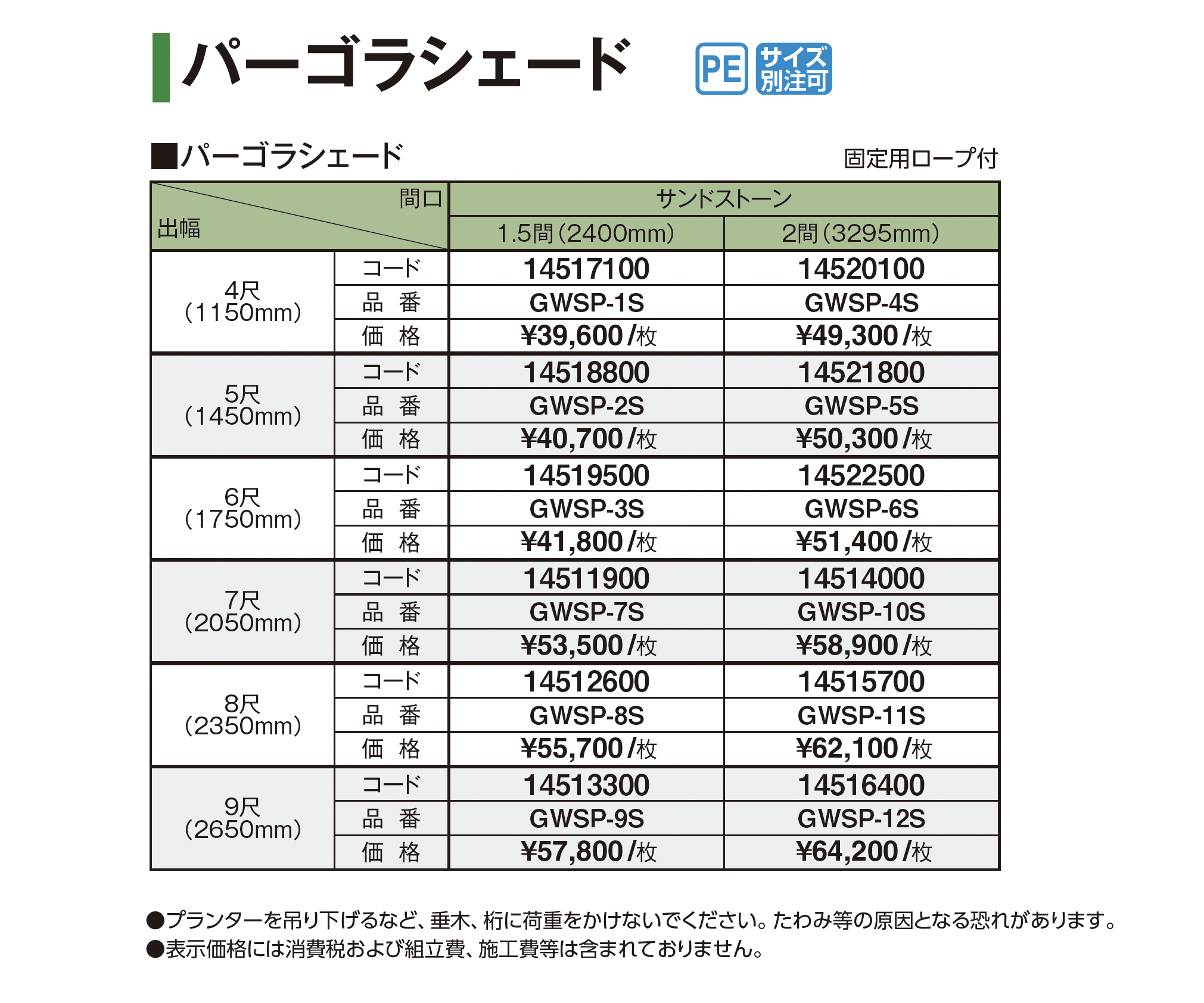 | 新旧品 | エバーエコ®︎ パーゴラシェード(プロガーデンエクステリア総合カタログPROEX2025)エバーエコ®︎ パーゴラシェード【2024年版】(プロガーデンエクステリア総合カタログ PROEX2024) |