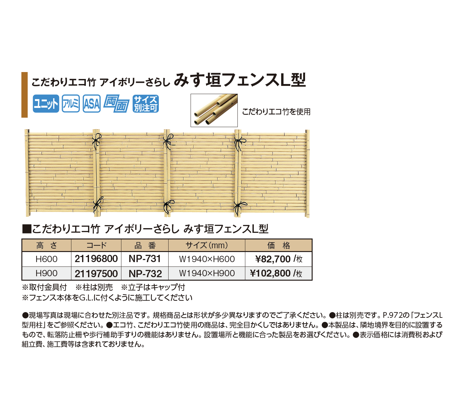 | 新旧品 | こだわりエコ竹 アイボリーさらし みす垣フェンスL型(プロガーデンエクステリア総合カタログPROEX2025)こだわりエコ竹 アイボリーさらし みす垣フェンスL型【2024年版】(プロガーデンエクステリア総合カタログ PROEX2024) |