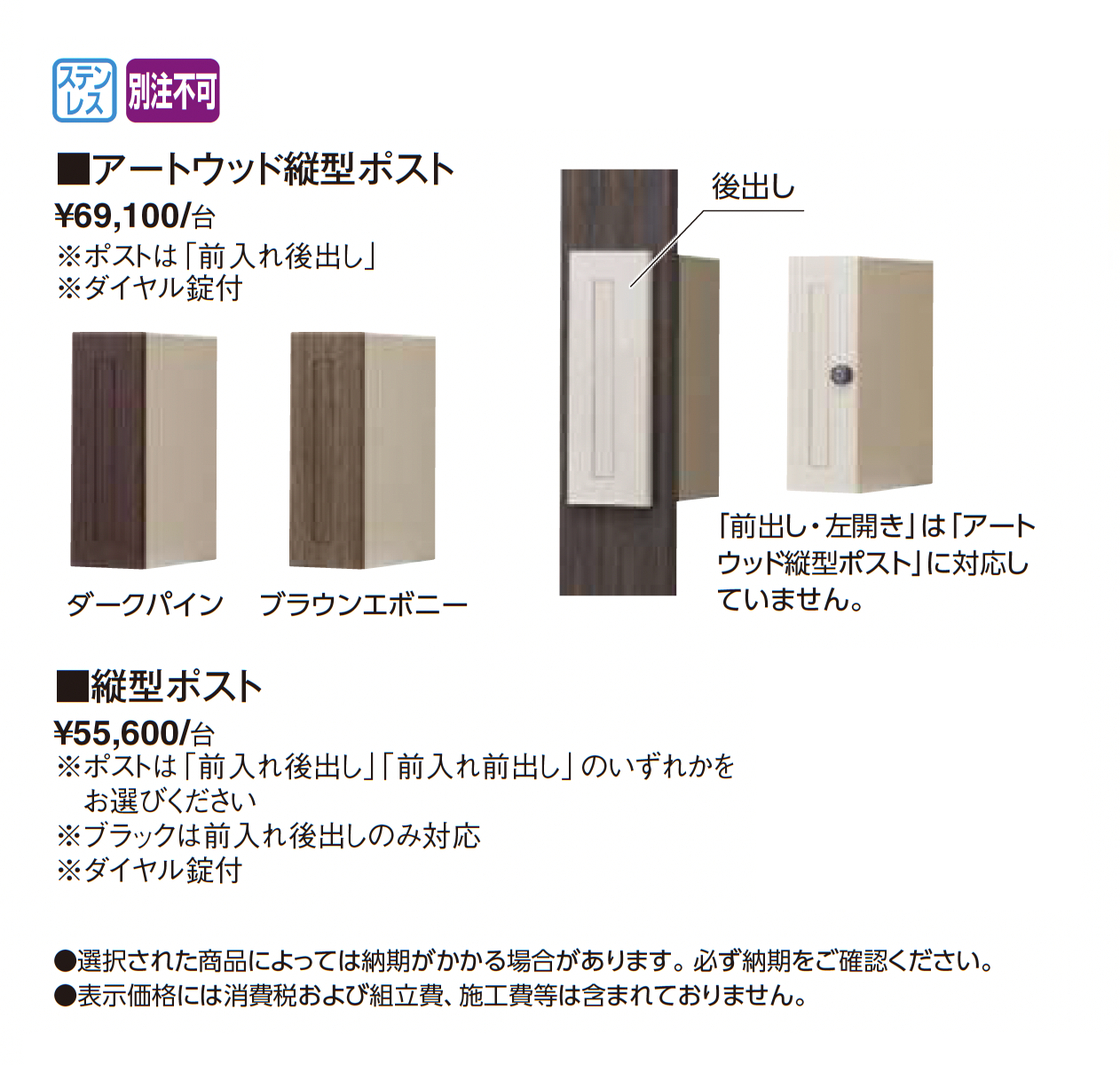 | 新旧品 | アートウッド 縦型ポスト(プロガーデンエクステリア総合カタログPROEX2025)アートウッド 縦型ポスト【2024年版】(プロガーデンエクステリア総合カタログ PROEX2024) |