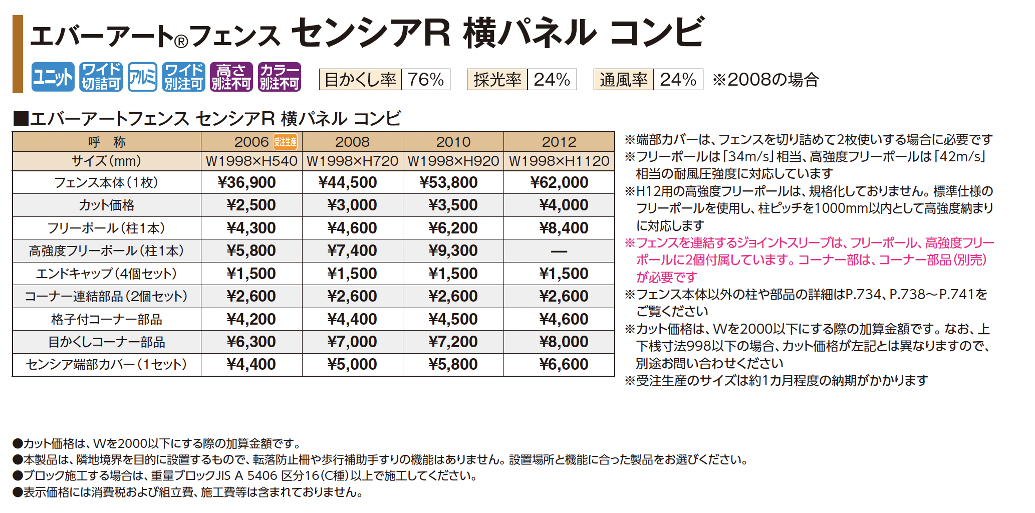 | 新旧品 | エバーアート®︎フェンス センシアR 横パネル コンビ(プロガーデンエクステリア総合カタログPROEX2025)エバーアート®︎フェンス センシアR 横パネル コンビ【2024年版】(プロガーデンエクステリア総合カタログ PROEX2024) |