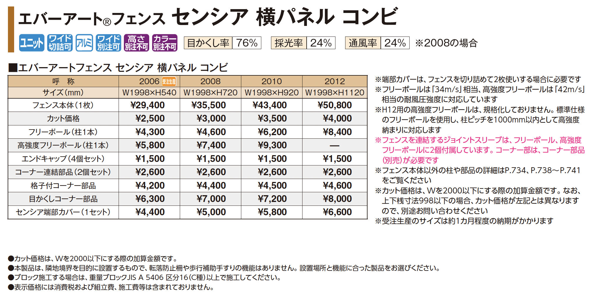 | 新旧品 | エバーアート®︎フェンス センシア 横パネル コンビ(プロガーデンエクステリア総合カタログPROEX2025)エバーアート®︎フェンス センシア 横パネル コンビ【2024年版】(プロガーデンエクステリア総合カタログ PROEX2024) |