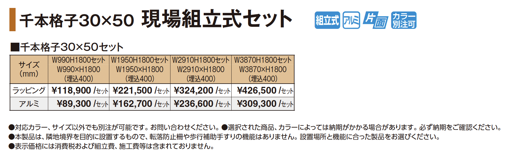 | 新旧品 | 千本格子30×50 現場組立式セット(プロガーデンエクステリア総合カタログPROEX2025)千本格子30×50 現場組立式セット【2024年版】(プロガーデンエクステリア総合カタログ PROEX2024) |