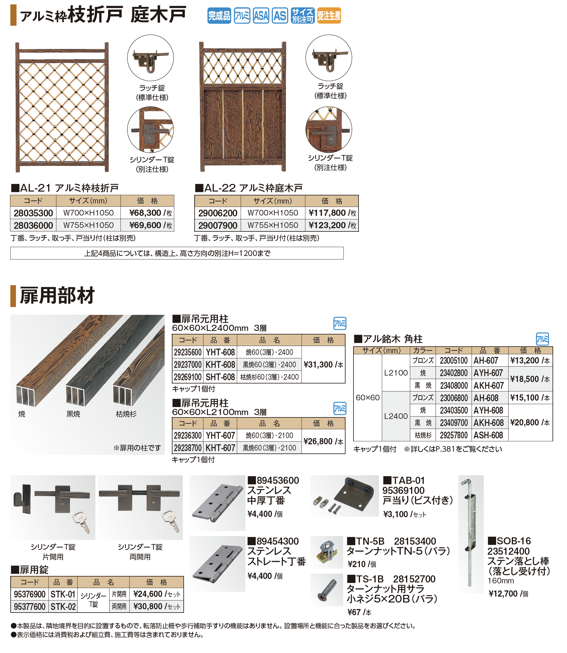 | 新旧品 | アルミ枠枝折戸 庭木戸(プロガーデンエクステリア総合カタログPROEX2025)アルミ枠枝折戸 庭木戸【2024年版】(プロガーデンエクステリア総合カタログ PROEX2024) |