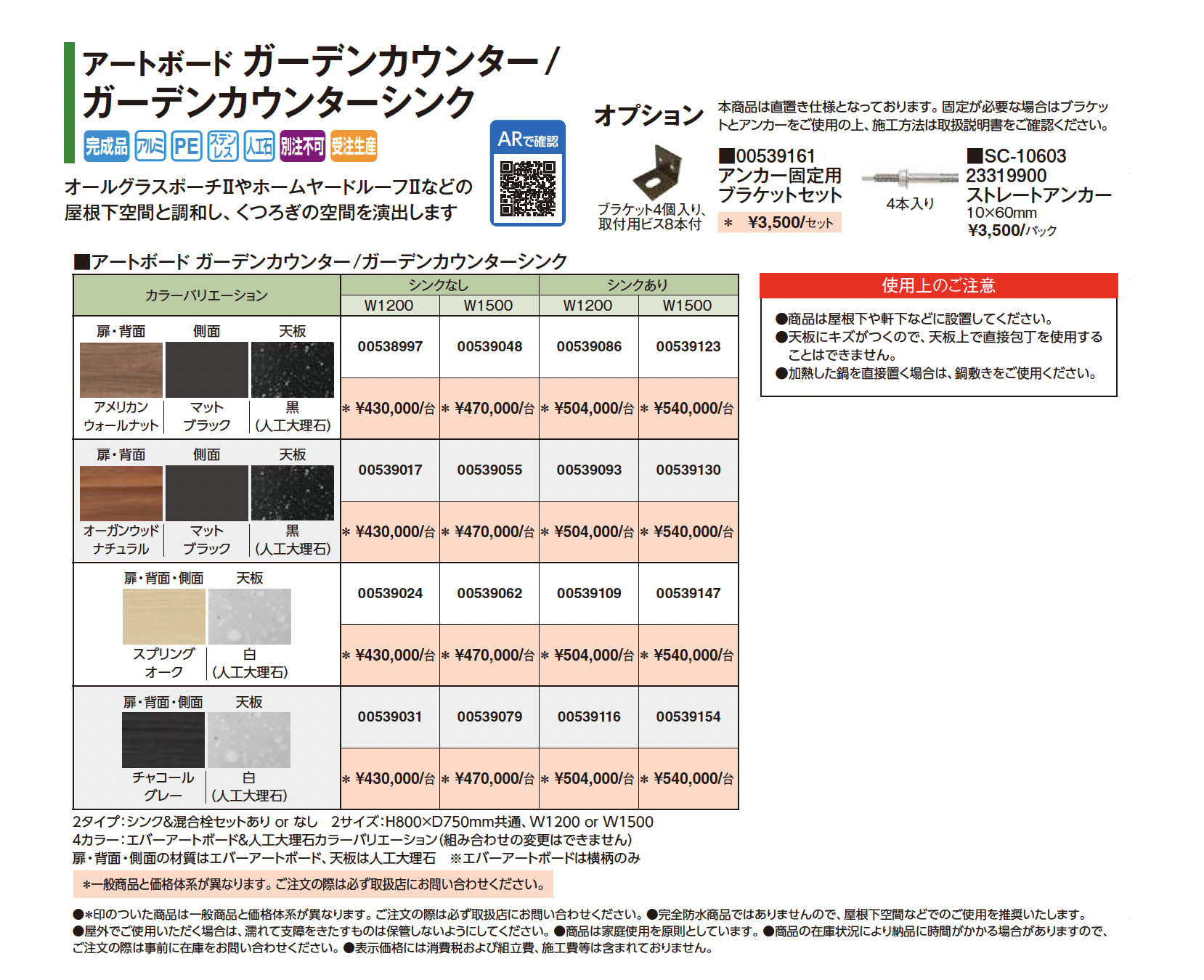 | 新旧品 | アートボード ガーデンカウンター/ガーデンカウンターシンク(プロガーデンエクステリア総合カタログPROEX2025)アートボード ガーデンカウンター/ガーデンカウンターシンク【2024年版】(プロガーデンエクステリア総合カタログ PROEX2024) |