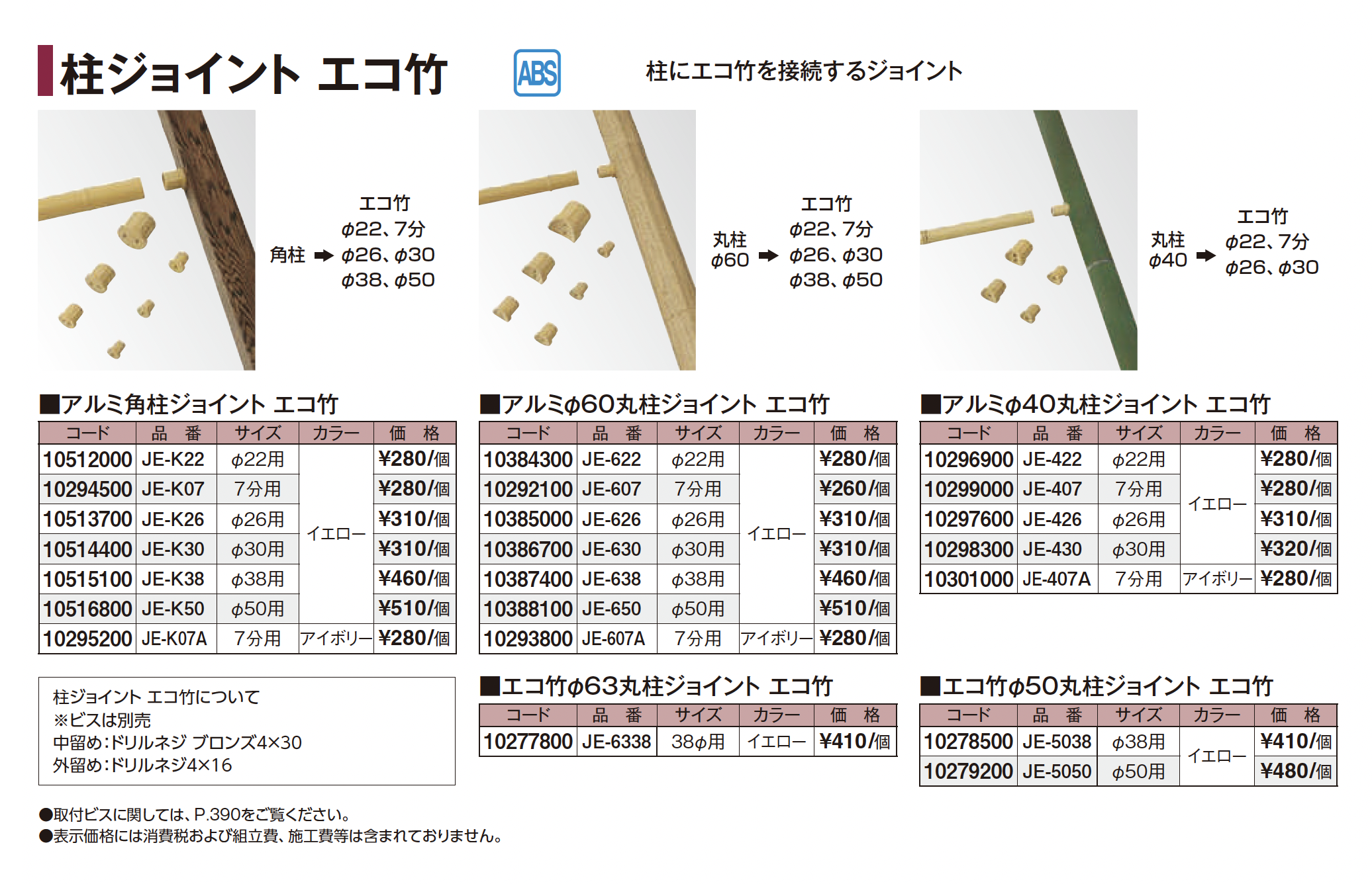 | 新旧品 | エバーバンブー®︎ 柱ジョイント エコ竹(プロガーデンエクステリア総合カタログPROEX2025)エバーバンブー®︎ 柱ジョイント エコ竹【2024年版】(プロガーデンエクステリア総合カタログ PROEX2024) |