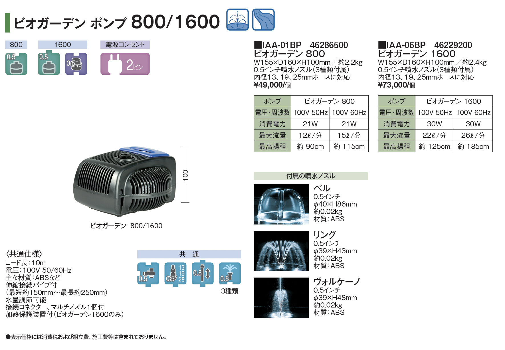 | 新旧品 | ビオガーデン ポンプ 800/1600(プロガーデンエクステリア総合カタログPROEX2025)ビオガーデン ポンプ 800/1600【2024年版】(プロガーデンエクステリア総合カタログ PROEX2024) |