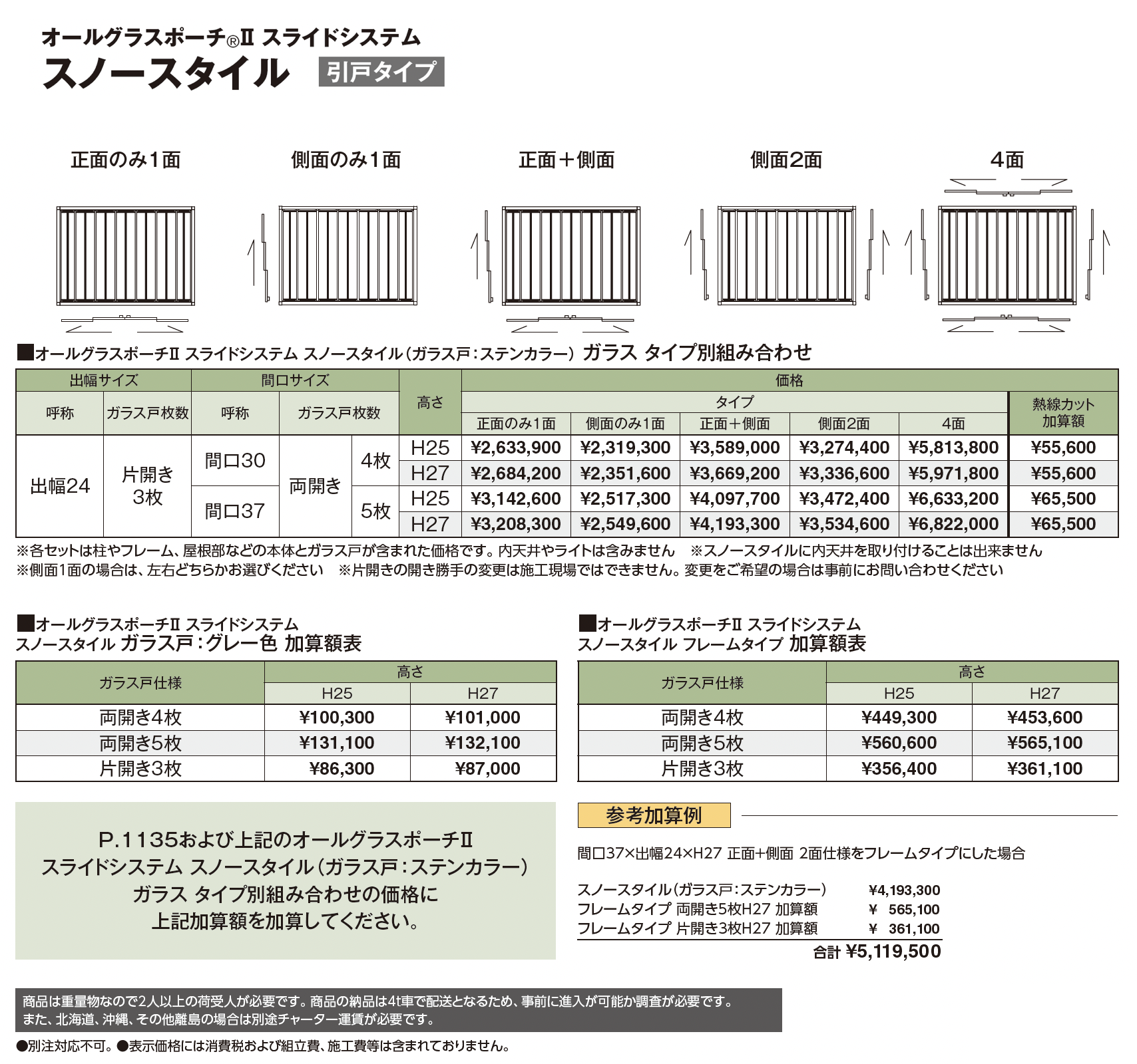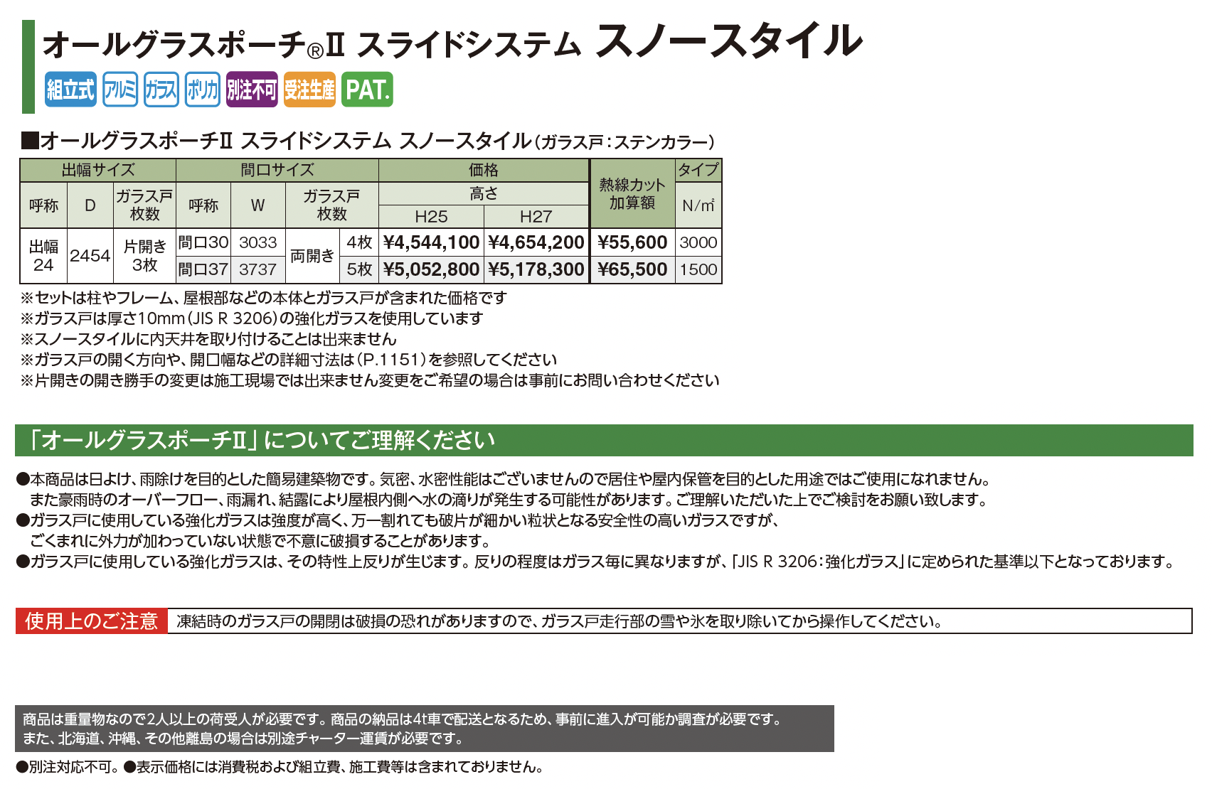 | 新旧品 | オールグラスポーチ®︎Ⅱ スライドシステム スノースタイル(プロガーデンエクステリア総合カタログPROEX2025)オールグラスポーチ®︎Ⅱ スライドシステム スノースタイル【2024年版】(プロガーデンエクステリア総合カタログ PROEX2024) |