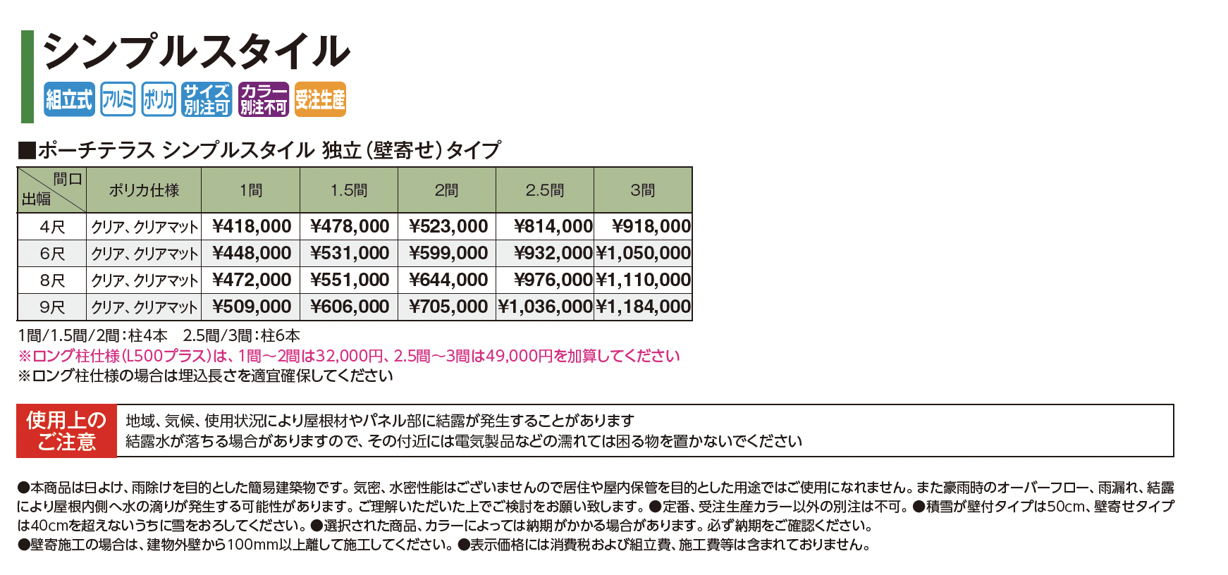 | 新旧品 | ポーチテラス®︎ シンプルスタイル(独立(壁寄せ)タイプ)(プロガーデンエクステリア総合カタログPROEX2025)ポーチテラス®︎ シンプルスタイル(独立(壁寄せ)タイプ)【2024年版】(プロガーデンエクステリア総合カタログ PROEX2024) |