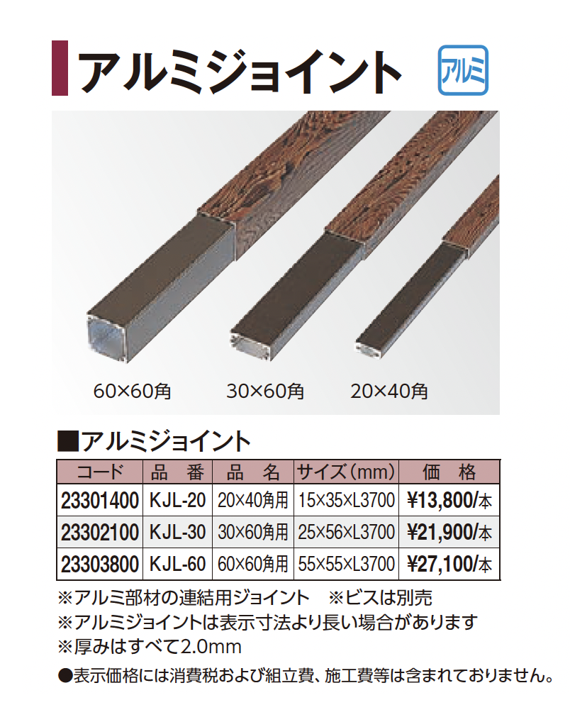 | 新旧品 | エバーバンブー®︎ アルミジョイント(プロガーデンエクステリア総合カタログPROEX2025)エバーバンブー®︎ アルミジョイント【2024年版】(プロガーデンエクステリア総合カタログ PROEX2024) |