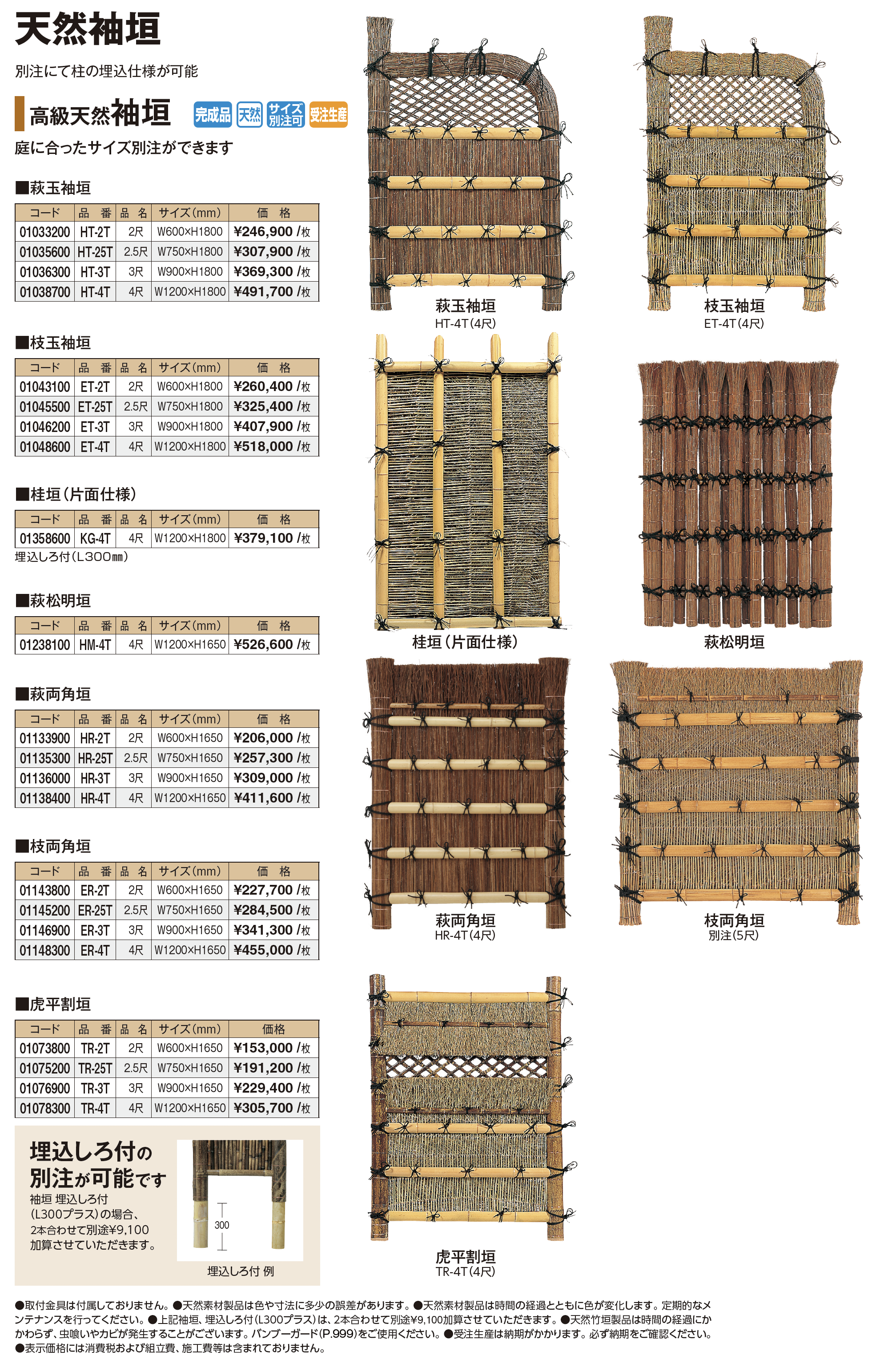 | 新旧品 | 高級天然袖垣(プロガーデンエクステリア総合カタログPROEX2025)高級天然袖垣【2024年版】(プロガーデンエクステリア総合カタログ PROEX2024) |
