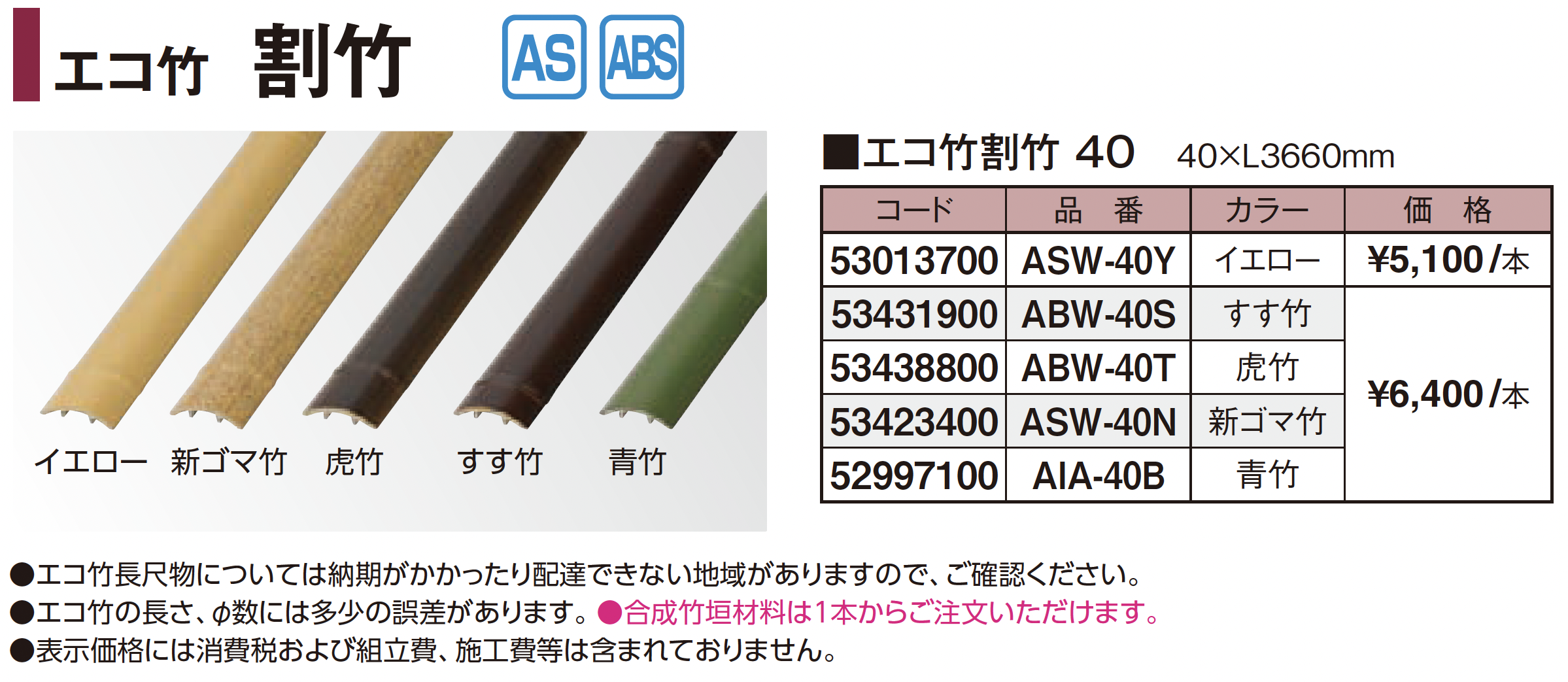 | 新旧品 | エバーバンブー®︎ エコ竹 割竹(プロガーデンエクステリア総合カタログPROEX2025)エバーバンブー®︎ エコ竹 割竹【2024年版】(プロガーデンエクステリア総合カタログ PROEX2024) |