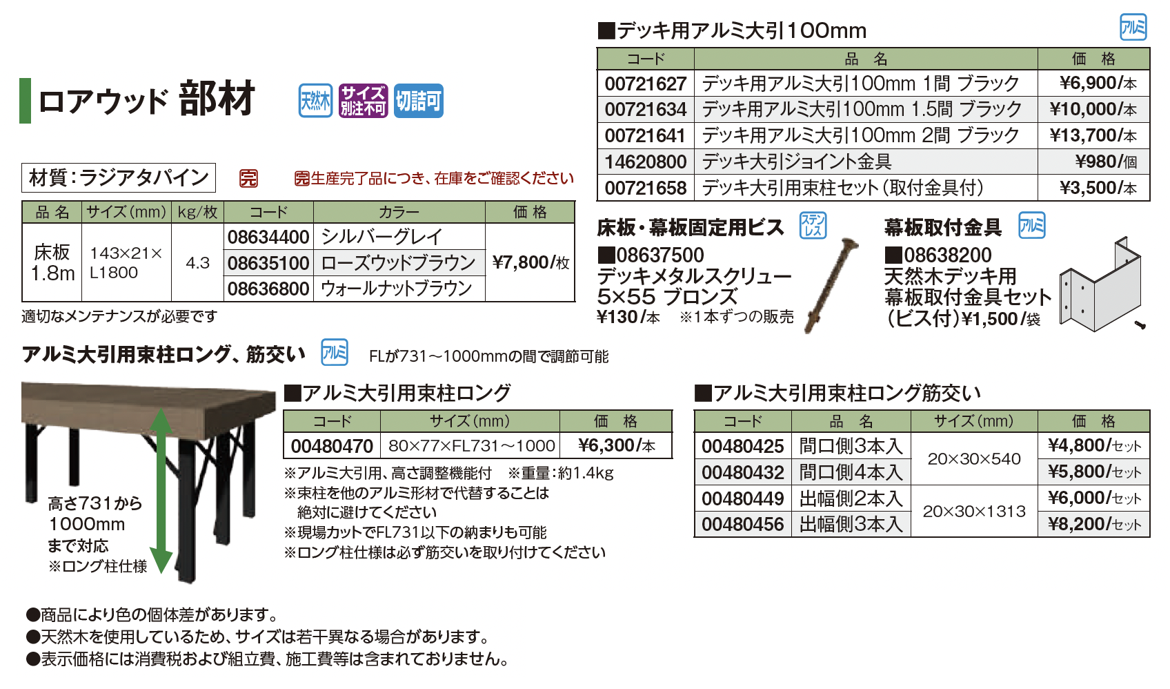 | 新旧品 | ロアウッド部材(プロガーデンエクステリア総合カタログPROEX2025)ロアウッド部材【2024年版】(プロガーデンエクステリア総合カタログ PROEX2024) |