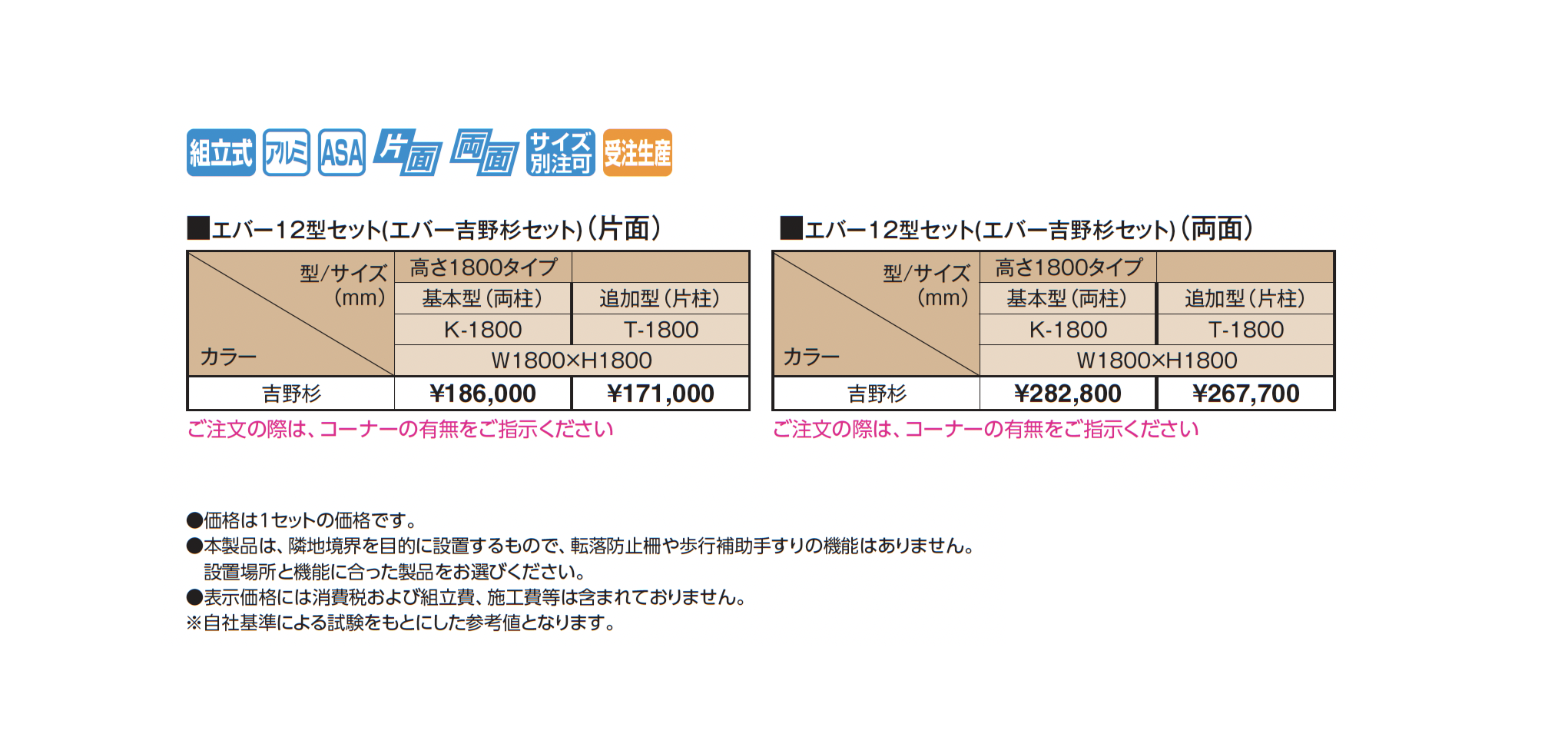 | 新旧品 | エバー12型セット(エバー吉野杉セット)(プロガーデンエクステリア総合カタログPROEX2025)エバー12型セット(エバー吉野竹セット)【2024年版】(プロガーデンエクステリア総合カタログ PROEX2024) |
