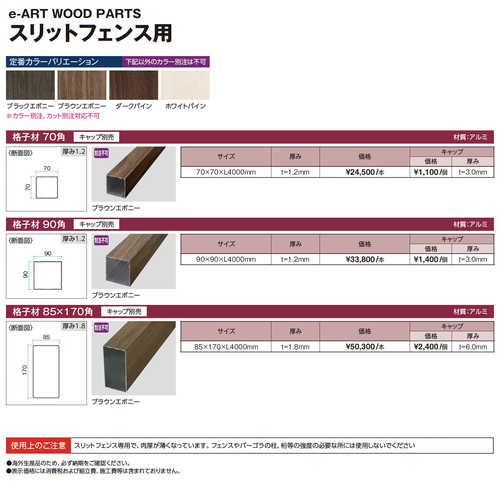 | 新旧品 | e-ART WOOD PARTS スリットフェンス用(プロガーデンエクステリア総合カタログPROEX2025)e-ART WOOD PARTS スリットフェンス用【2024年版】(プロガーデンエクステリア総合カタログ PROEX2024) |